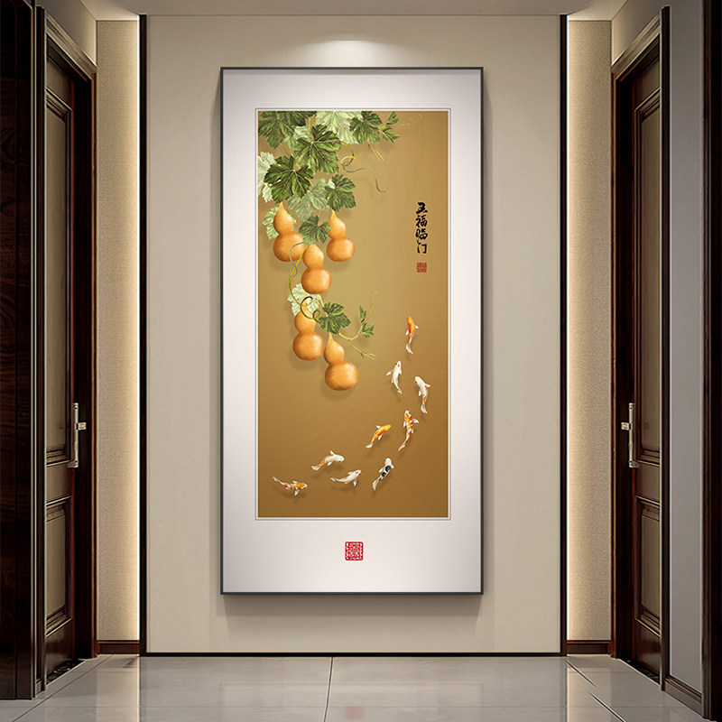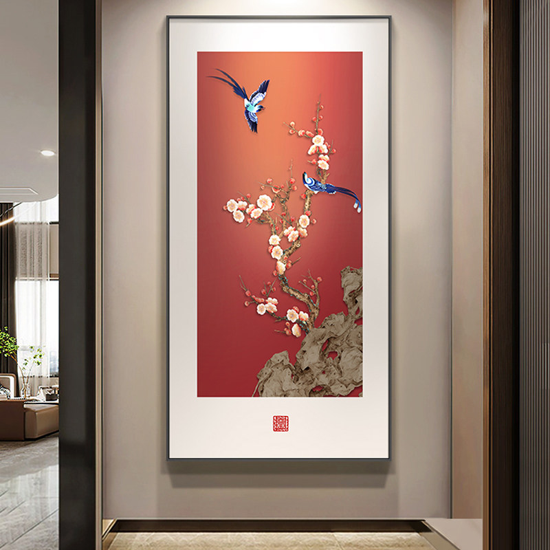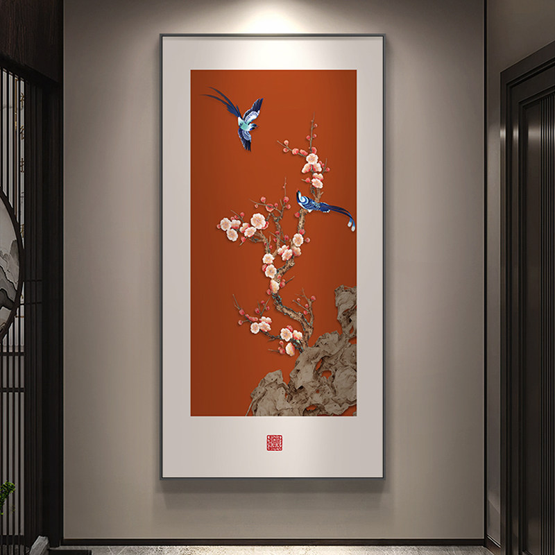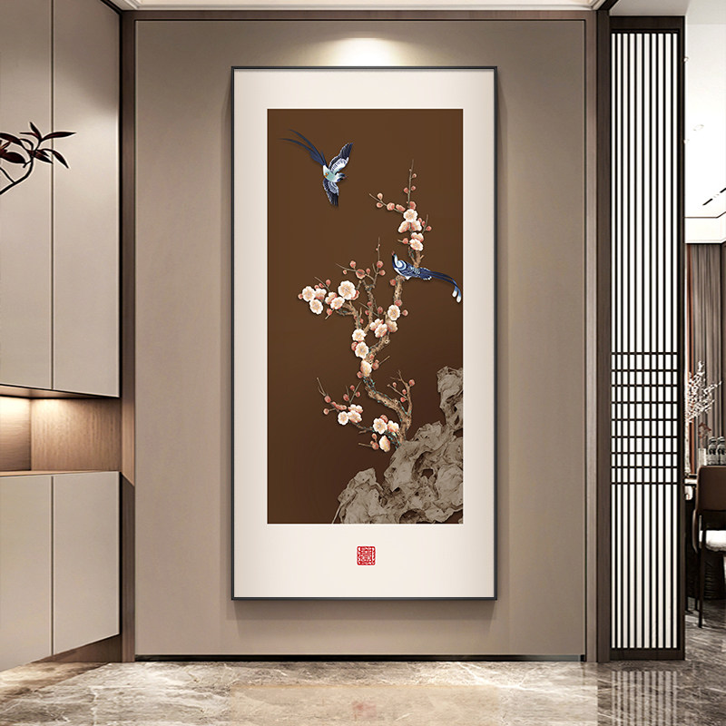 📚 喜气盈门玄关装饰画新中式竖版寓意好花鸟挂画走廊过道高级感壁画