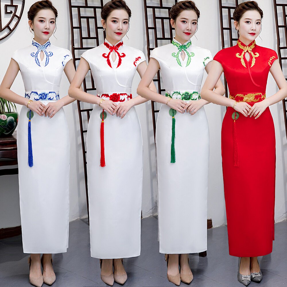 💥惊艳全场!新款绣花礼仪旗袍长款青花瓷旗袍年会礼服,券后价仅需118!💃