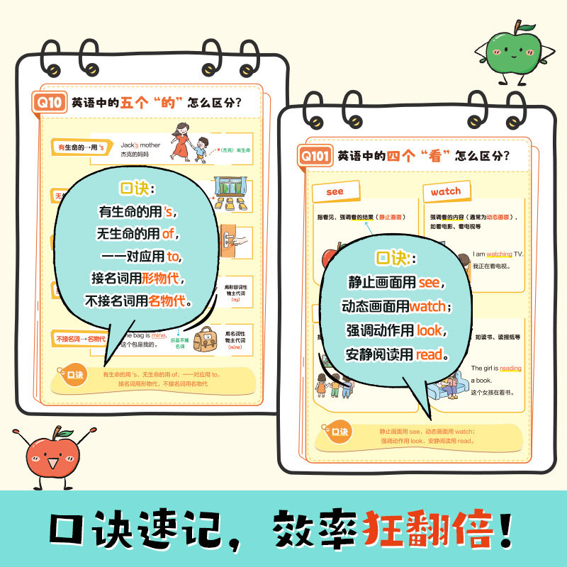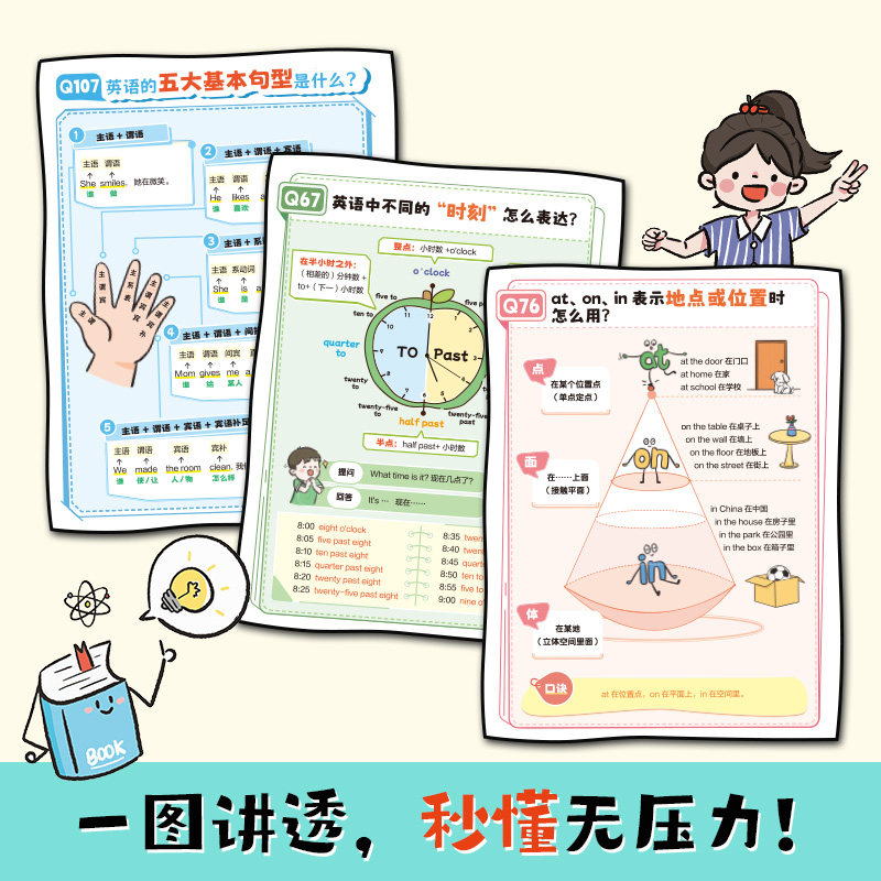 📚 【新品推荐】开心文化一图秒懂小学英语语法秒记小学英语单词小学口诀速记趣味漫画语法书初中英语语法提前学词类句型大全开心教育