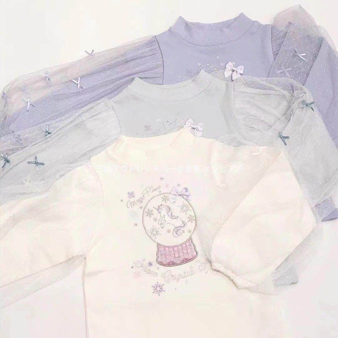 📚 mezzopiano mp 钢琴家春秋女童装独角兽水晶球泡泡袖长袖厚棉T纱
