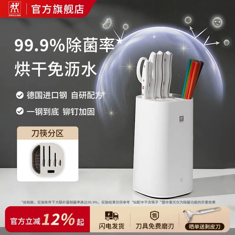 📚 德国双立人正品pollux大白盾双重除菌刀架套装家用抗菌刀砧板组合