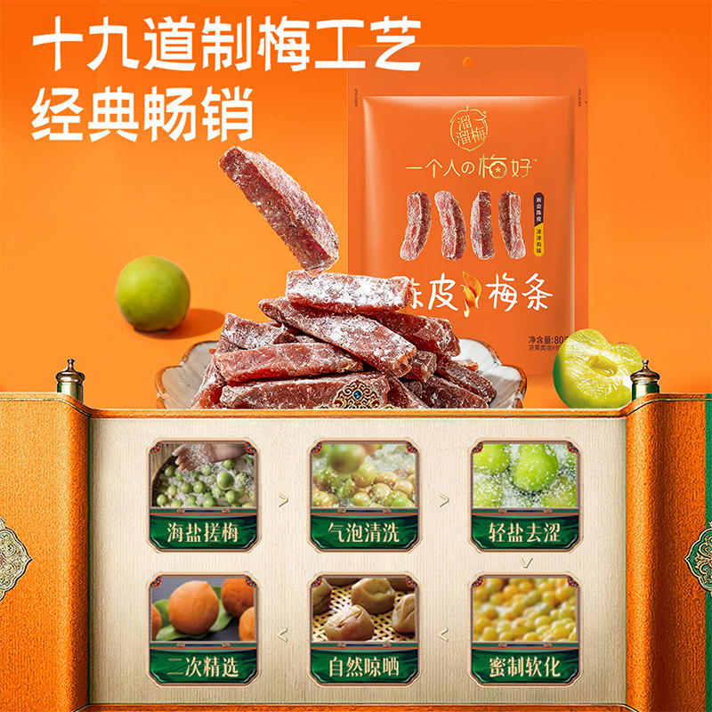 📚 溜溜梅陈皮梅条厚清梅条无核话梅酸梅子干零食休闲办公室小吃