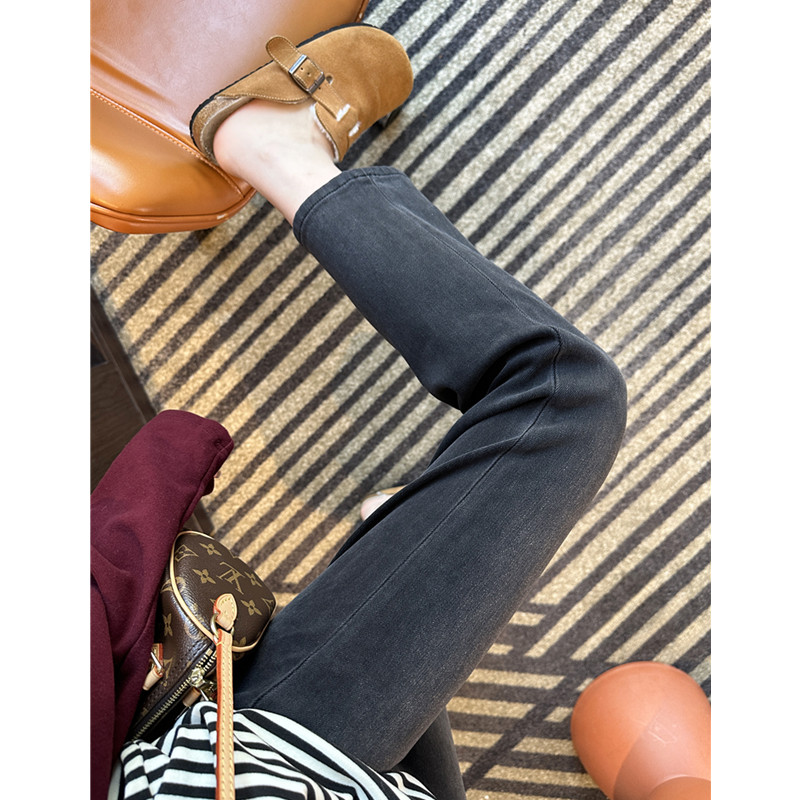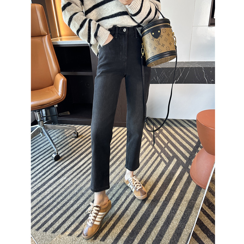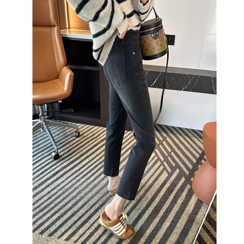 📚 王炸裤型~!黑灰色四面弹直筒裤女2026春季小个子九分法棍牛仔裤