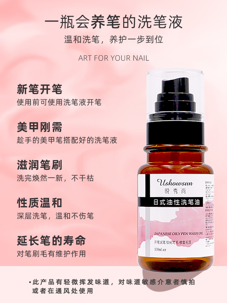 📚 日式油性洗笔水三合一凝胶液美甲光疗笔清洁剂润笔开甲油胶笔工具