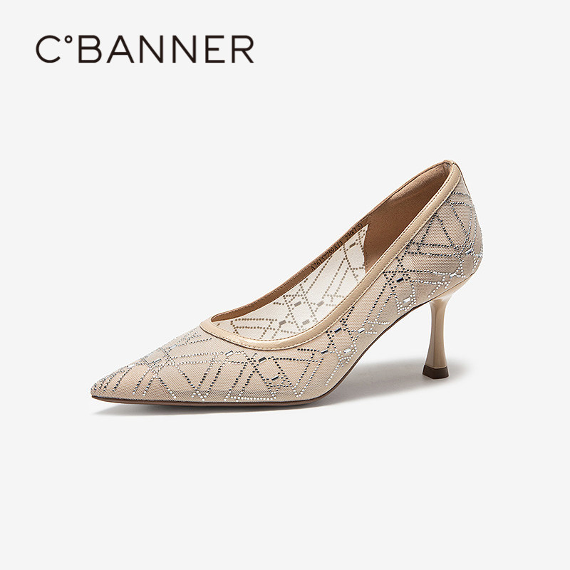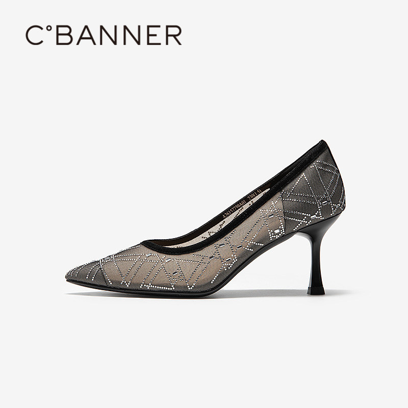📚 【静音系列】千百度烫钻细高跟鞋女2026春季新款透气网布浅口单鞋