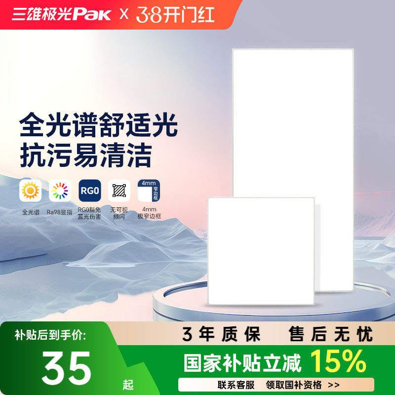 📚 【国家补贴】三雄极光平板灯集成吊顶嵌入厨卫灯30x30铝扣板30x60
