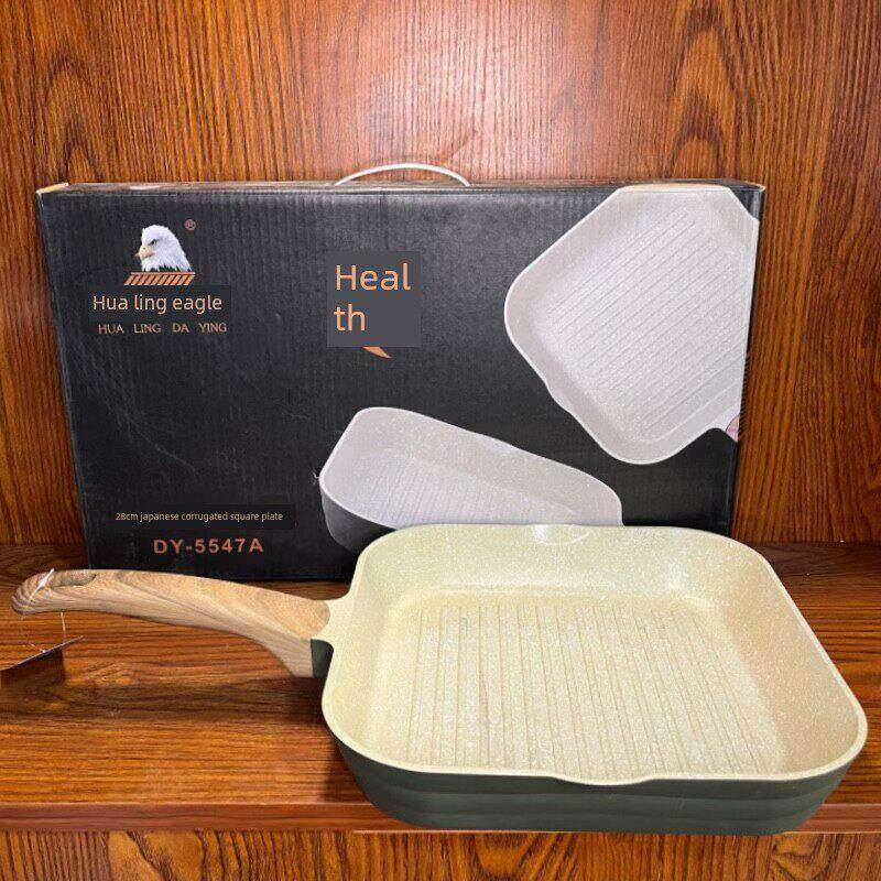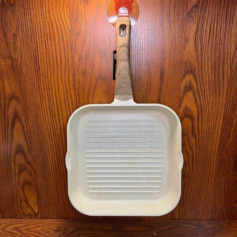 📚 麦饭石不粘锅28cm平底煎锅多功能煎牛排专用条纹电磁炉燃气通用