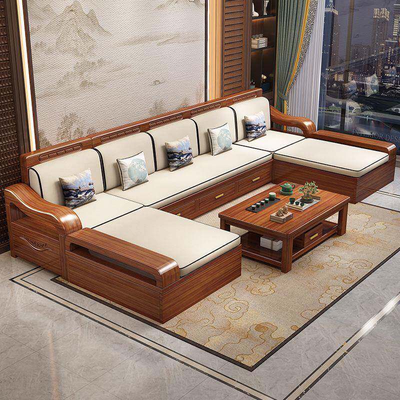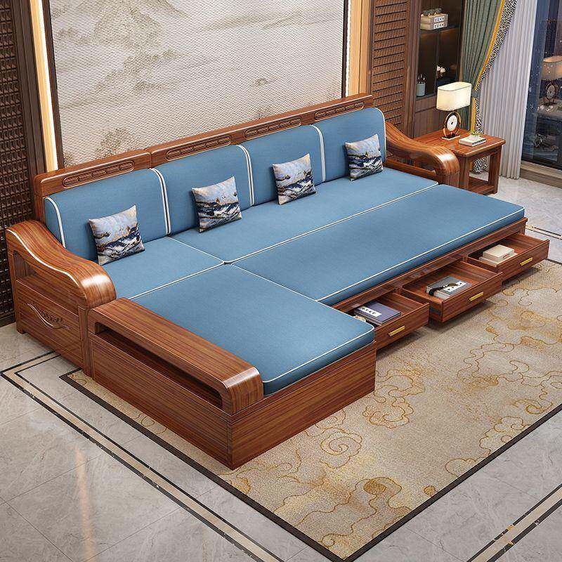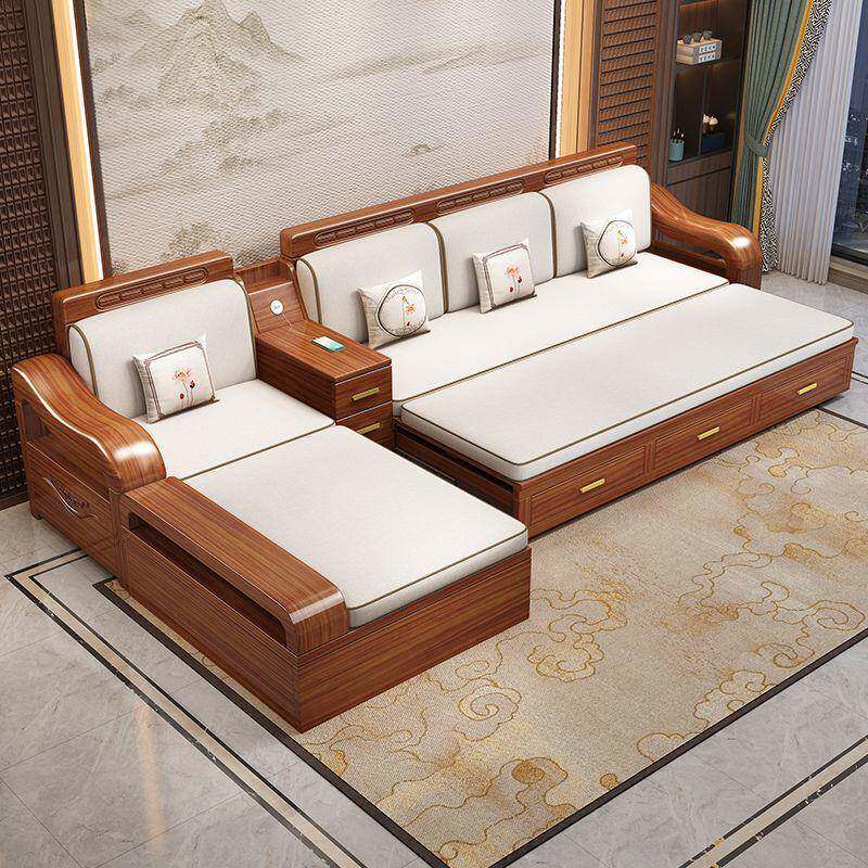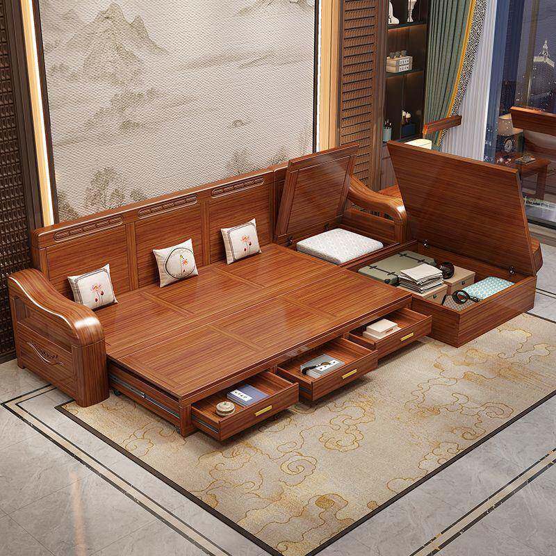 📚 华文世家中式实木多功能沙发床坐卧两用客厅胡桃木推拉沙发可折叠