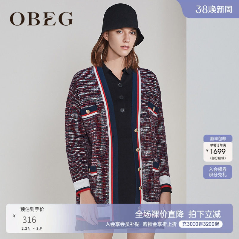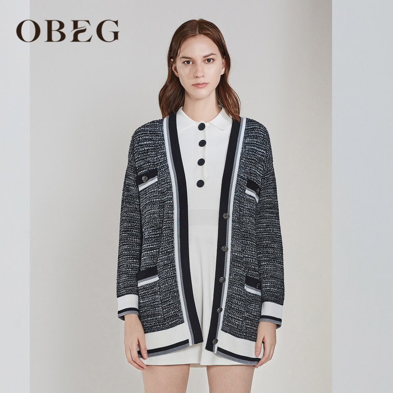 📚 OBEG欧碧倩复古羊毛针织开衫女小香风短外套10403040