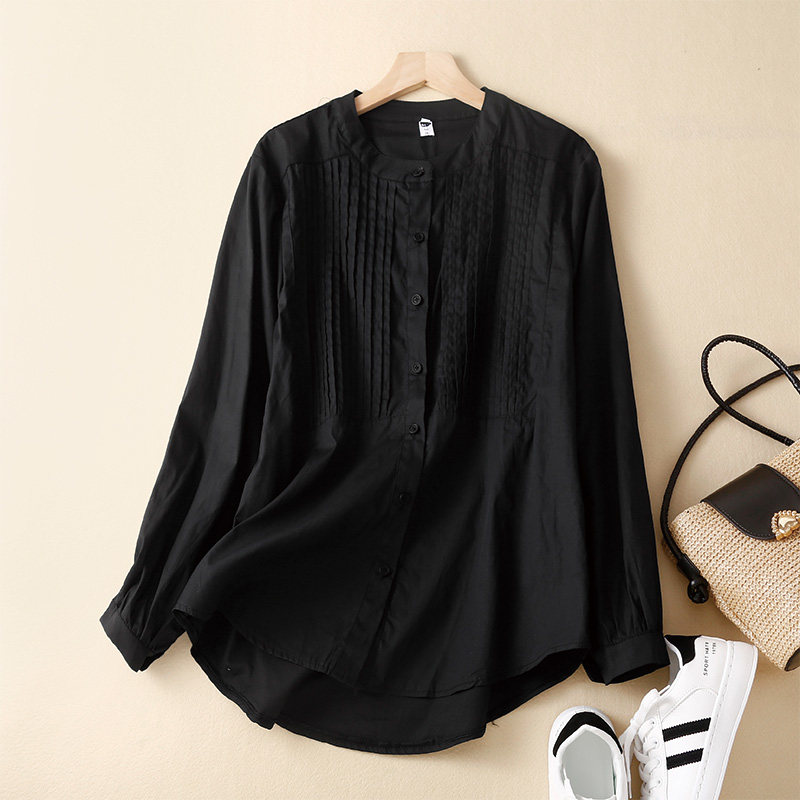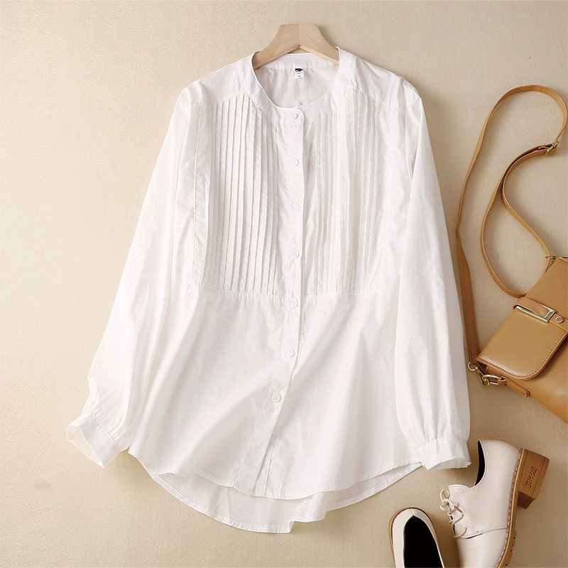 📚 外贸出口意大利高端女装日系复古纯色风琴褶皱衬衫工装衬衣上衣潮