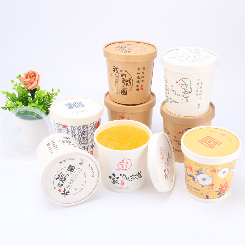 📚 一次性牛皮纸粥桶粥碗商用汤酸辣粉炒酸奶外卖打包盒三米曼玲同款