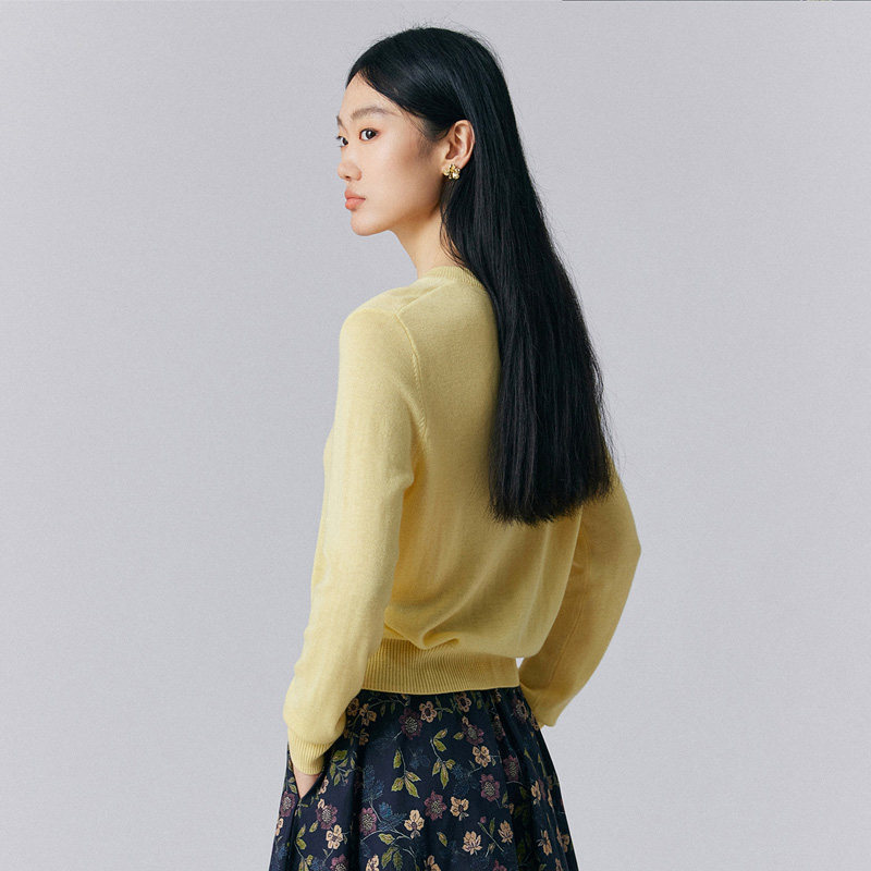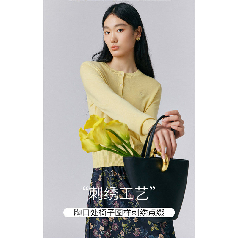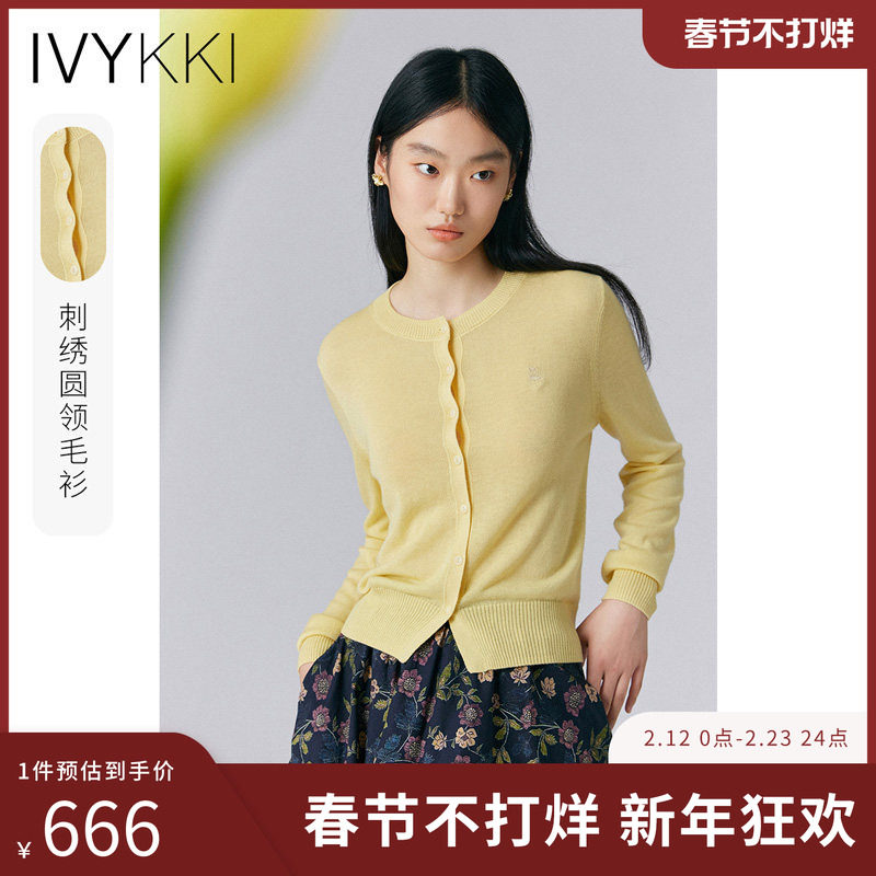 📚 IVYKKI艾维2025年春季新款时尚圆领毛针织衫女长袖气质针织小开衫