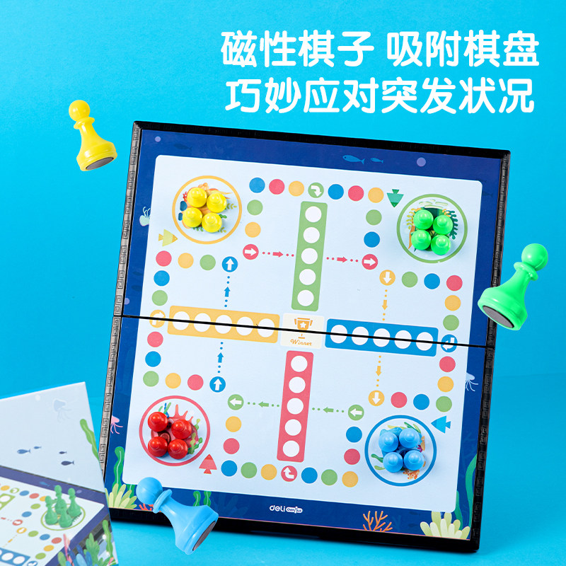 📚 得力飞行棋跳棋围棋斗兽棋儿童益智玩具小学生便携式磁性折叠棋盘