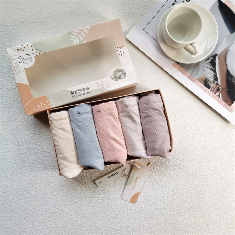📚 曼娜2357舒适桑蚕丝底档裸氨无缝收腹提臀高弹女士三角裤五色盒装