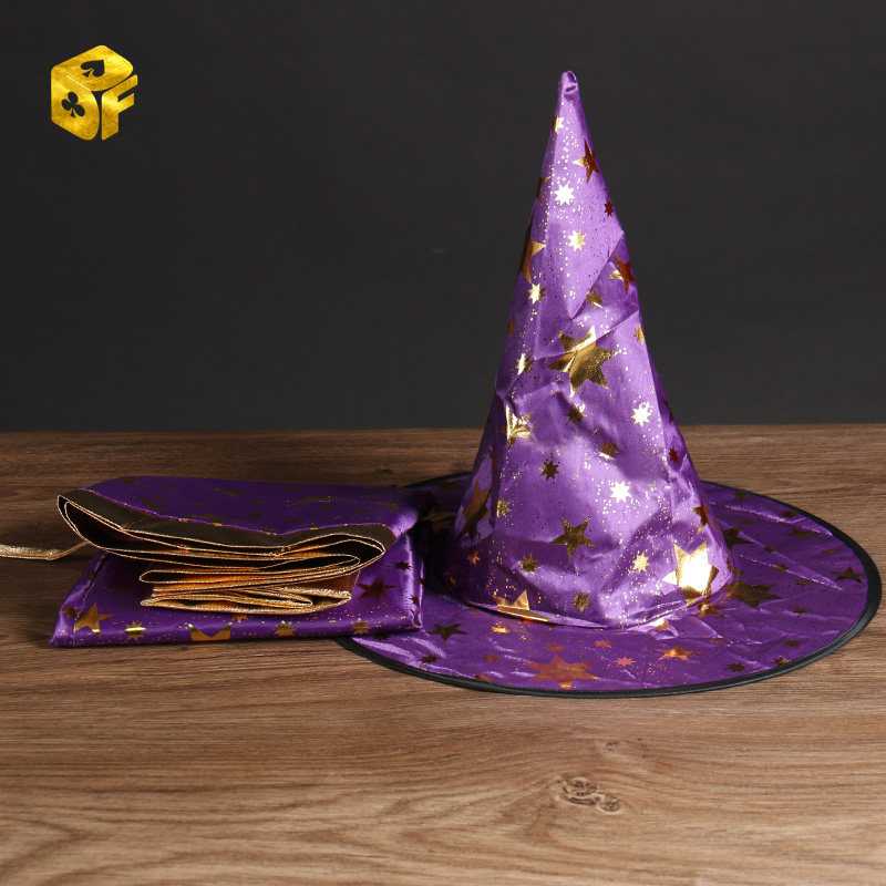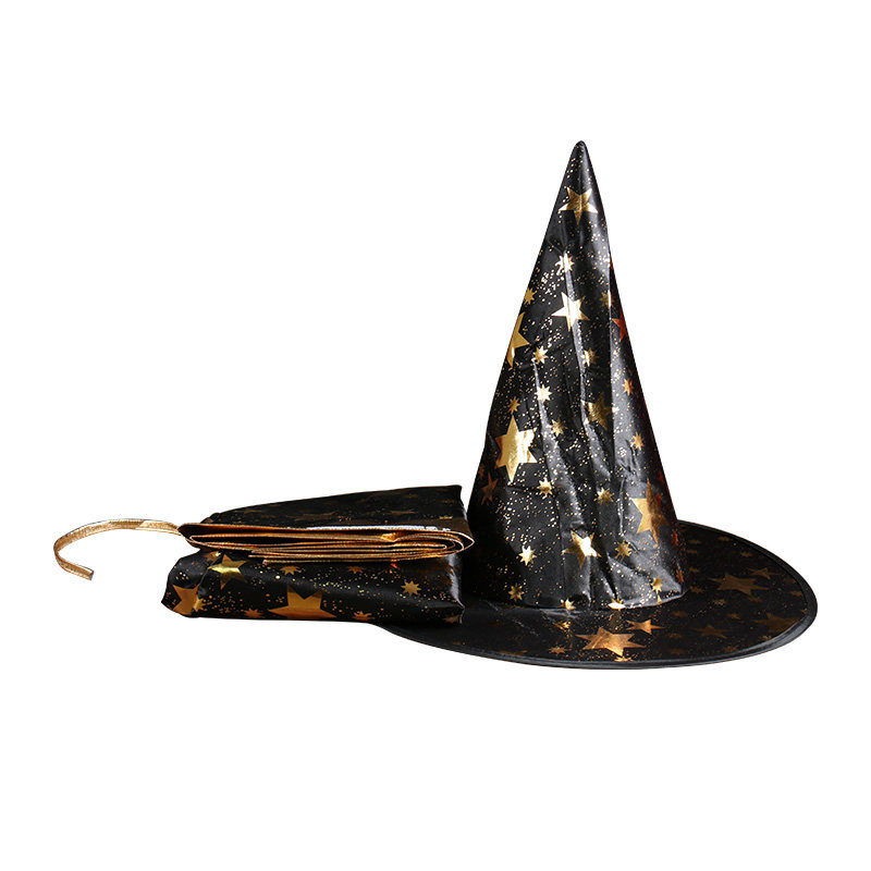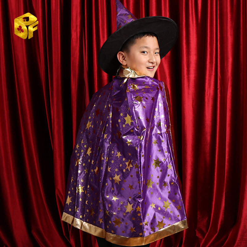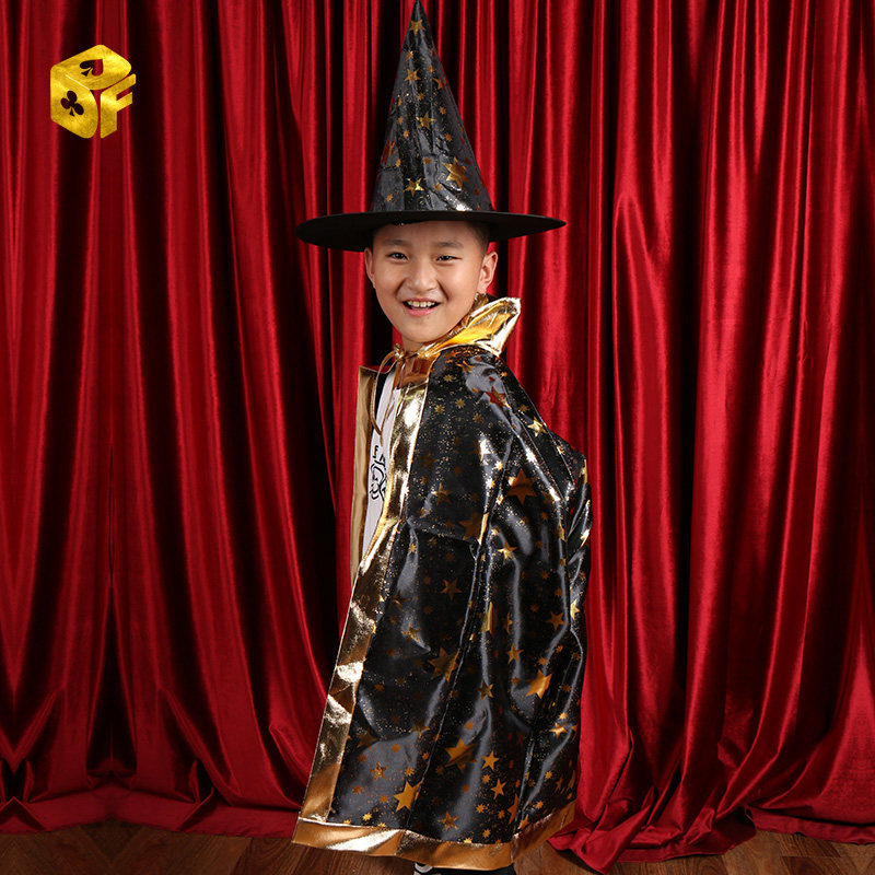 📚 儿童斗篷礼帽组合五星披风魔法师 女巫婆披肩 万圣节服装魔术道具