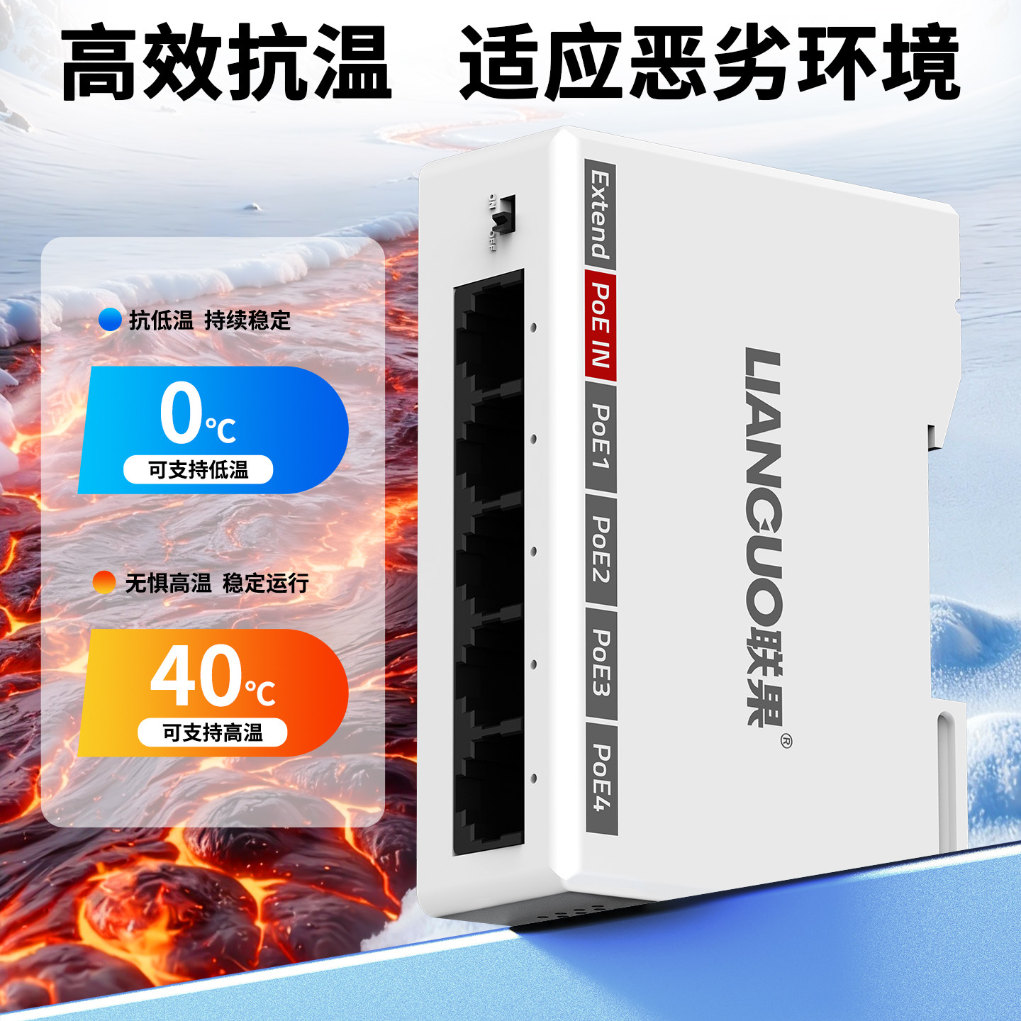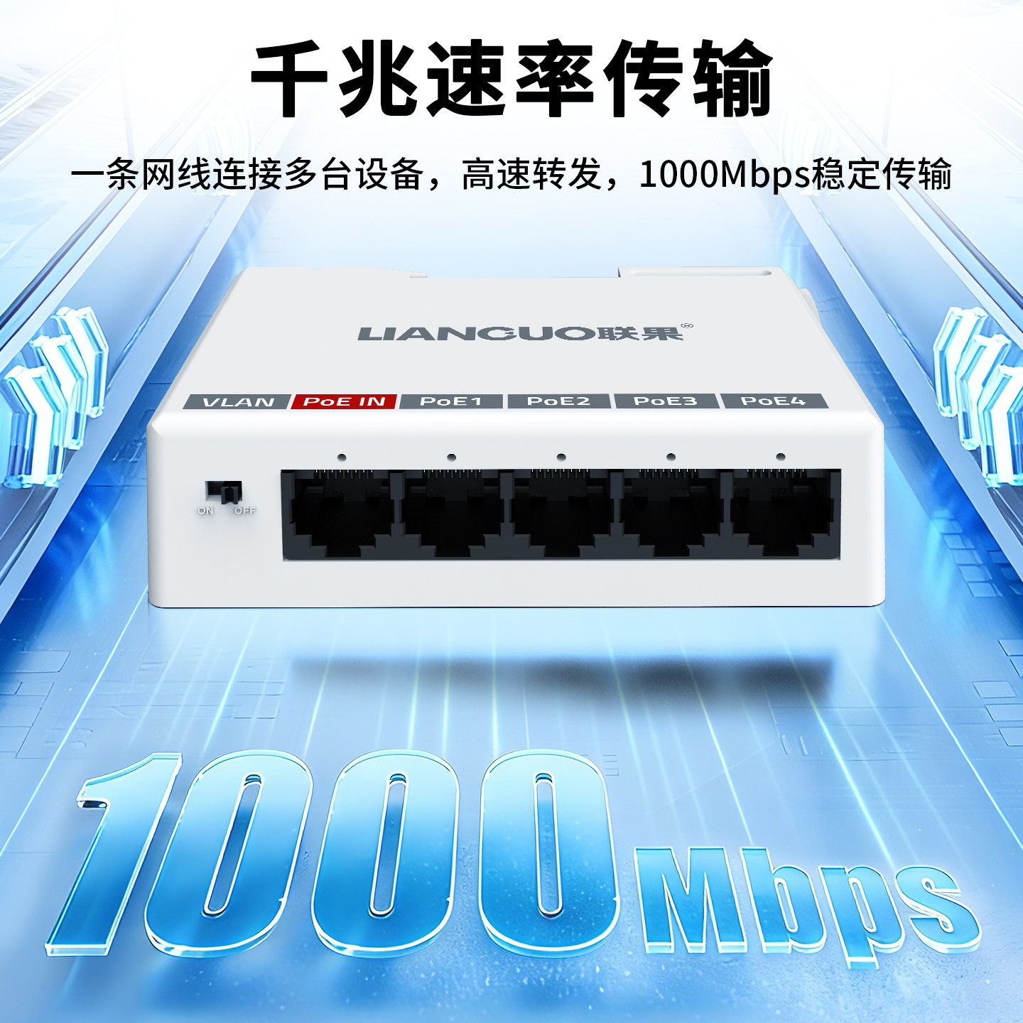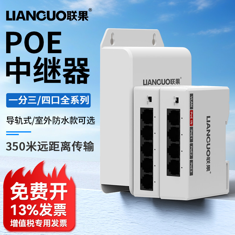 📚 联果 千兆POE中继器一分三/4 一进四出 导轨式百兆标准网络延长器防雷防水POE供电监控摄像头分线器poe补点宝