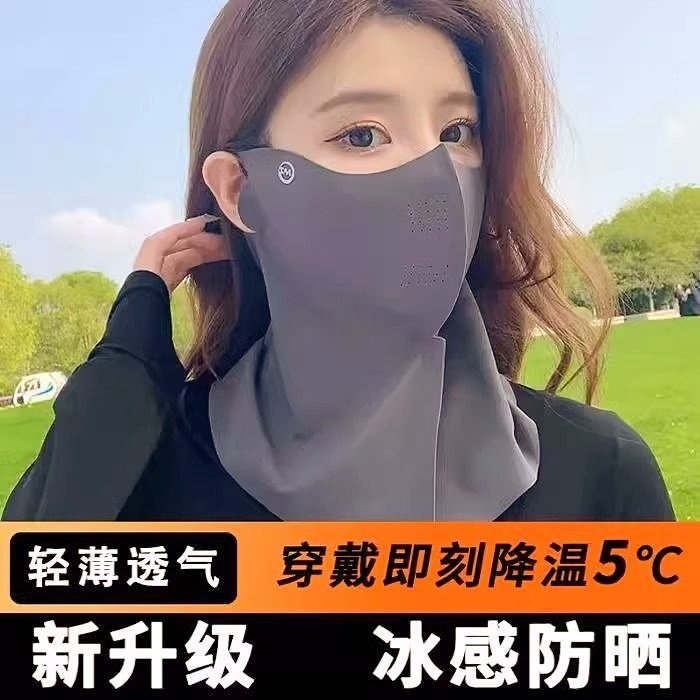 📚 夏季面罩护颈一体脸基尼防紫外线防晒口罩遮脖子护颈女夏冰丝新款