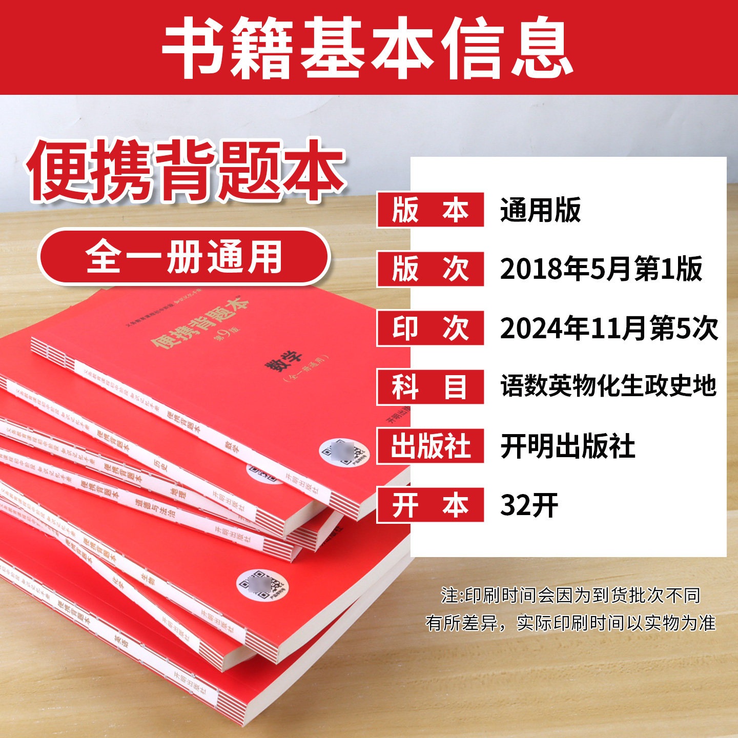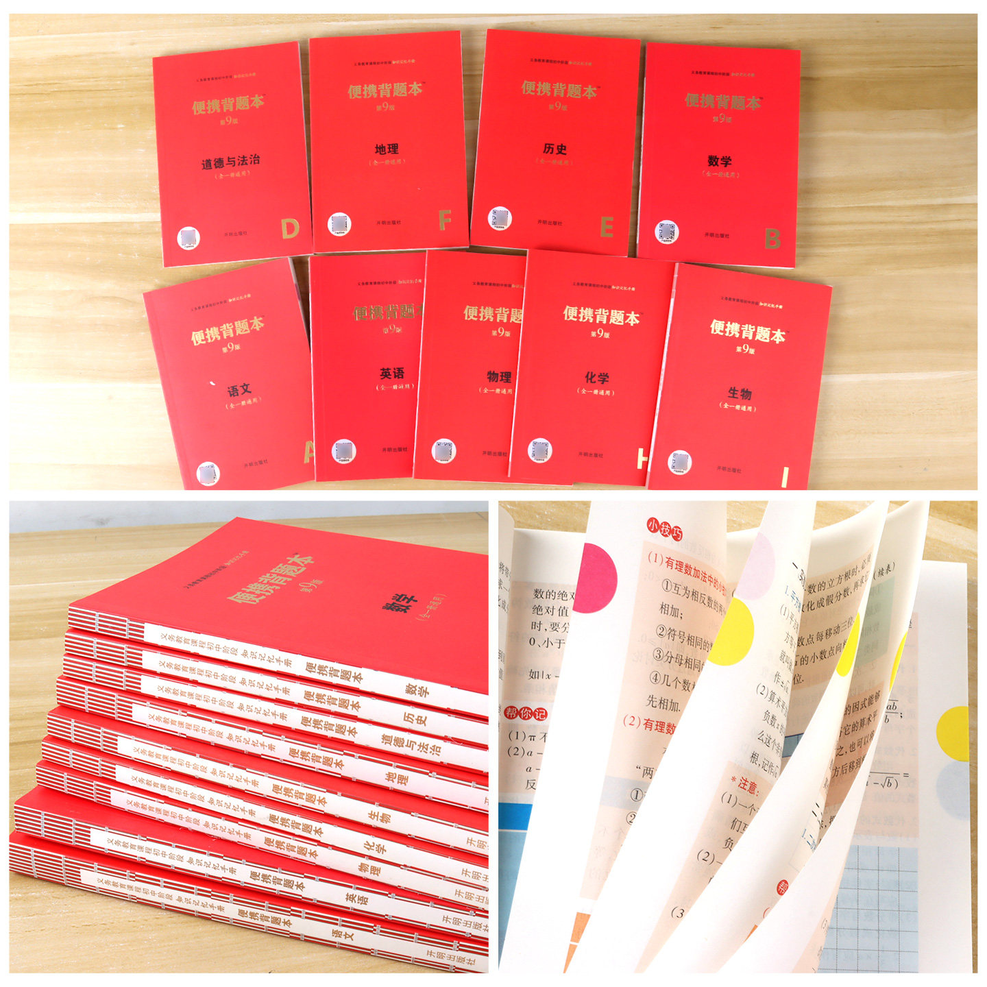 📚 2026年便携背题本初中第9版语文数学英语物理化学生物政治历史地理全一册通用版初一初二初三速查速记小红书开明出版社