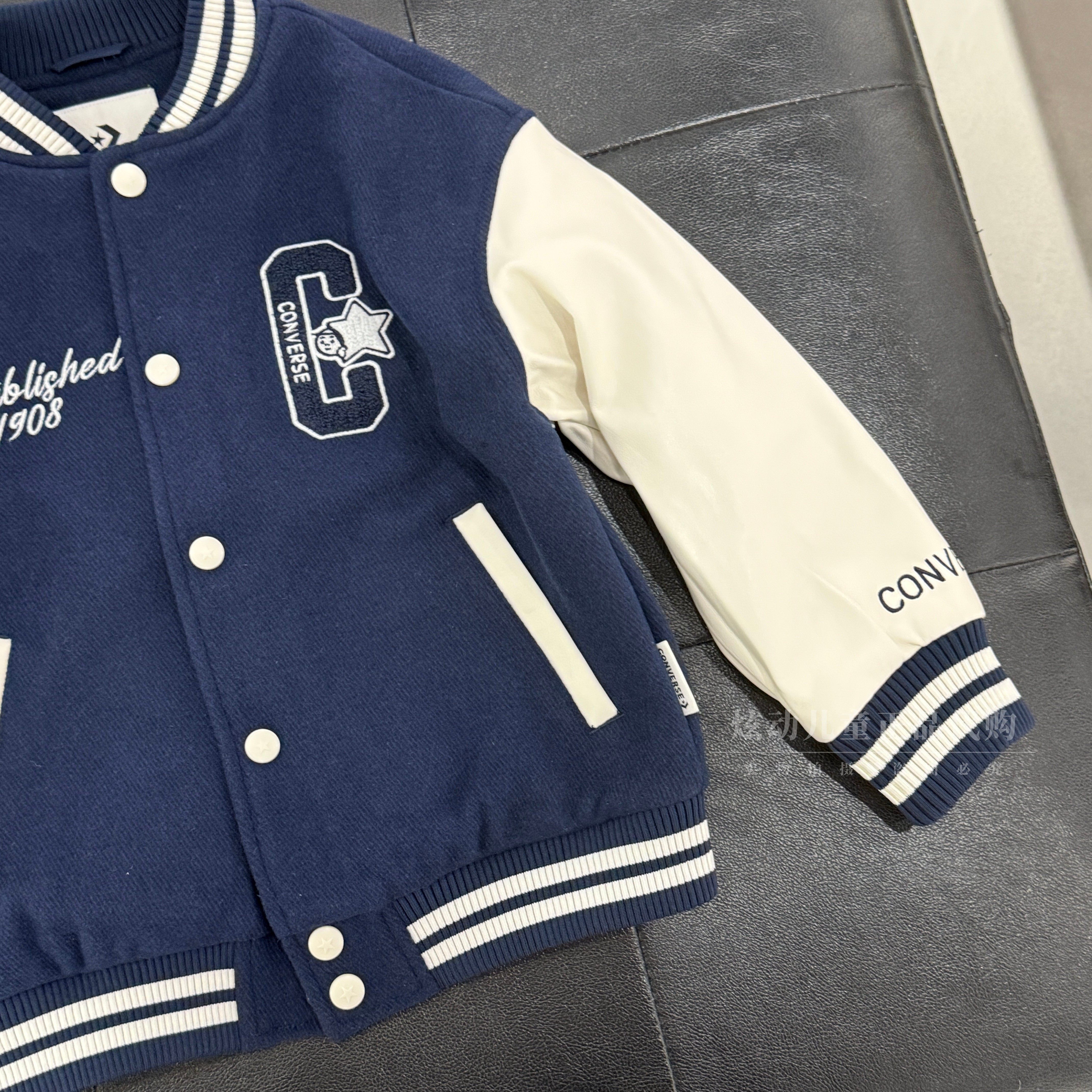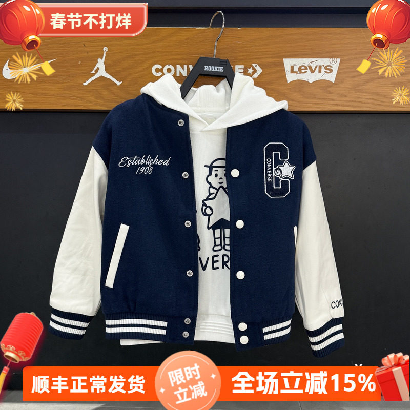📚 匡威儿童棒球服25秋款男女童拼接时尚夹克上衣毛呢外套 CV2542534