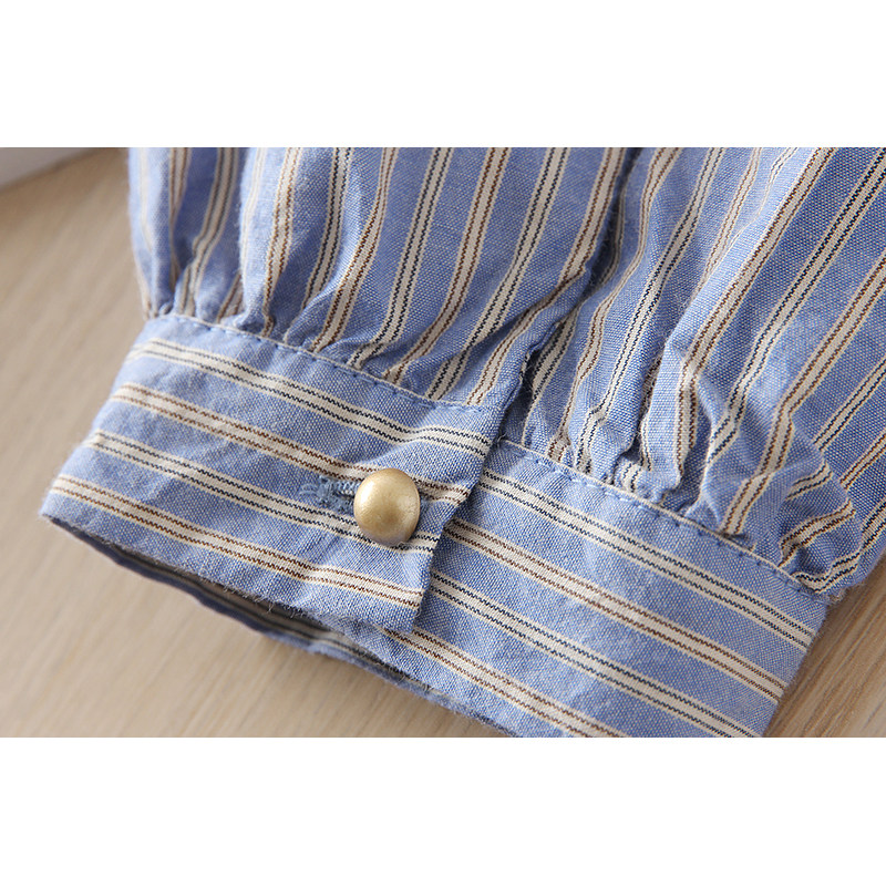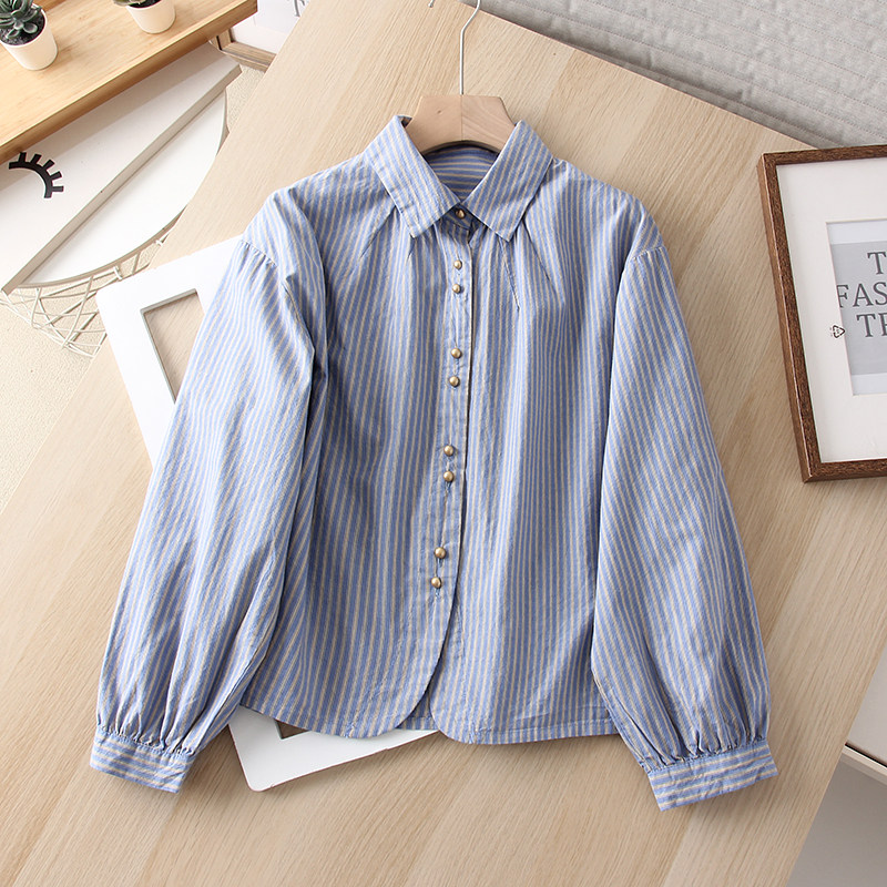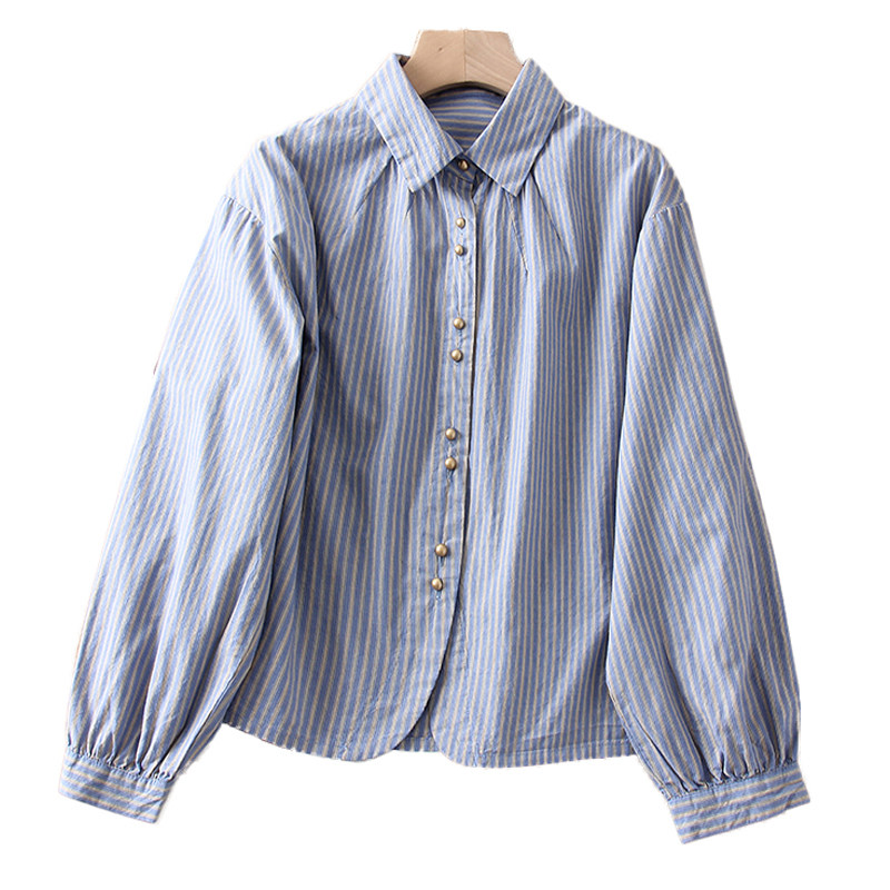 📚 百搭减龄韩风 100全棉色织条纹2025春季女士休闲翻领长袖衬衫衬衣