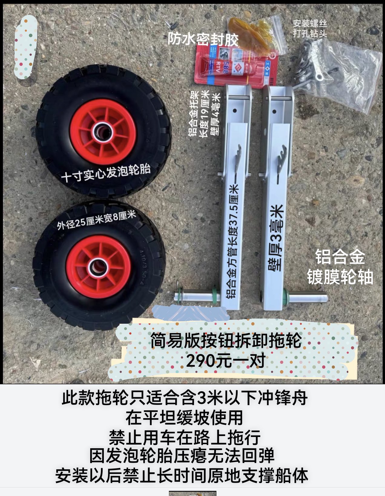 📚 舟杰轮冲锋舟拖轮橡皮艇尾轮小拖车(咨询后再付款)