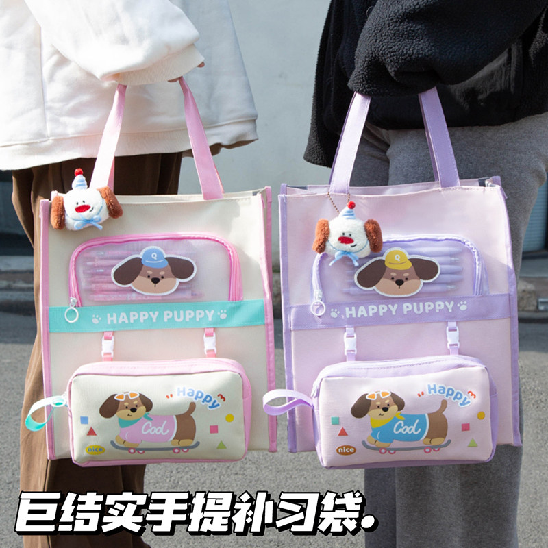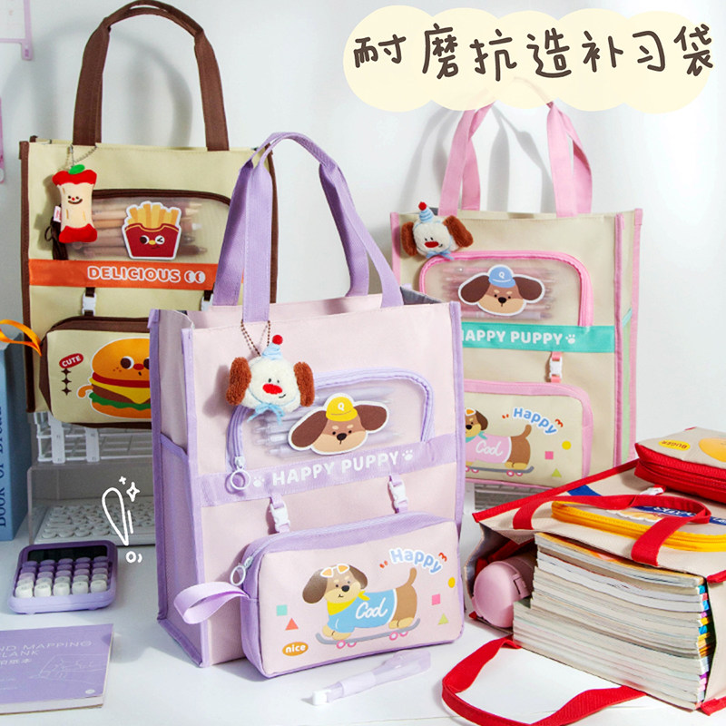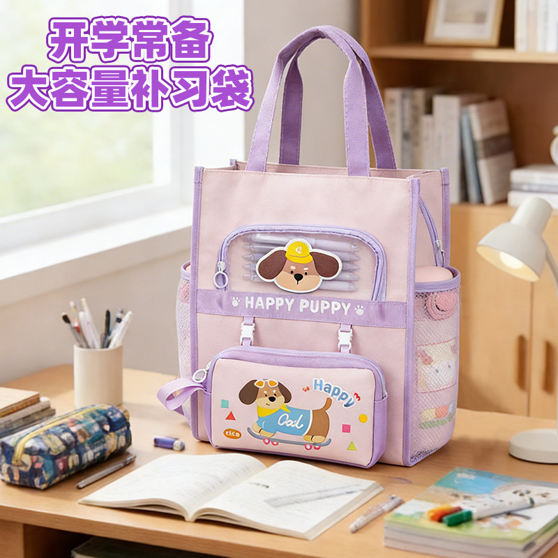 📚 【加厚600D牛津布】紫色修狗补习袋小学生手提袋拎书袋女孩儿童手提包学习班补课美术袋女童作业书包专用袋子