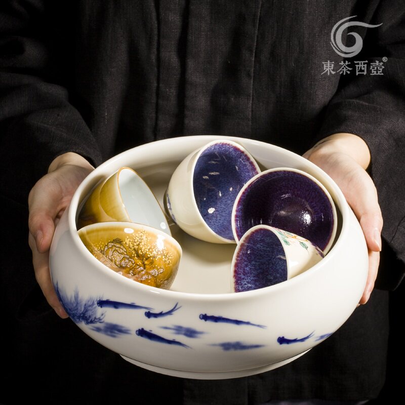 📚 东茶西壶 陶瓷茶碗建水茶杯碗杯洗茶盅茶钵大水盂 青花瓷茶洗大号