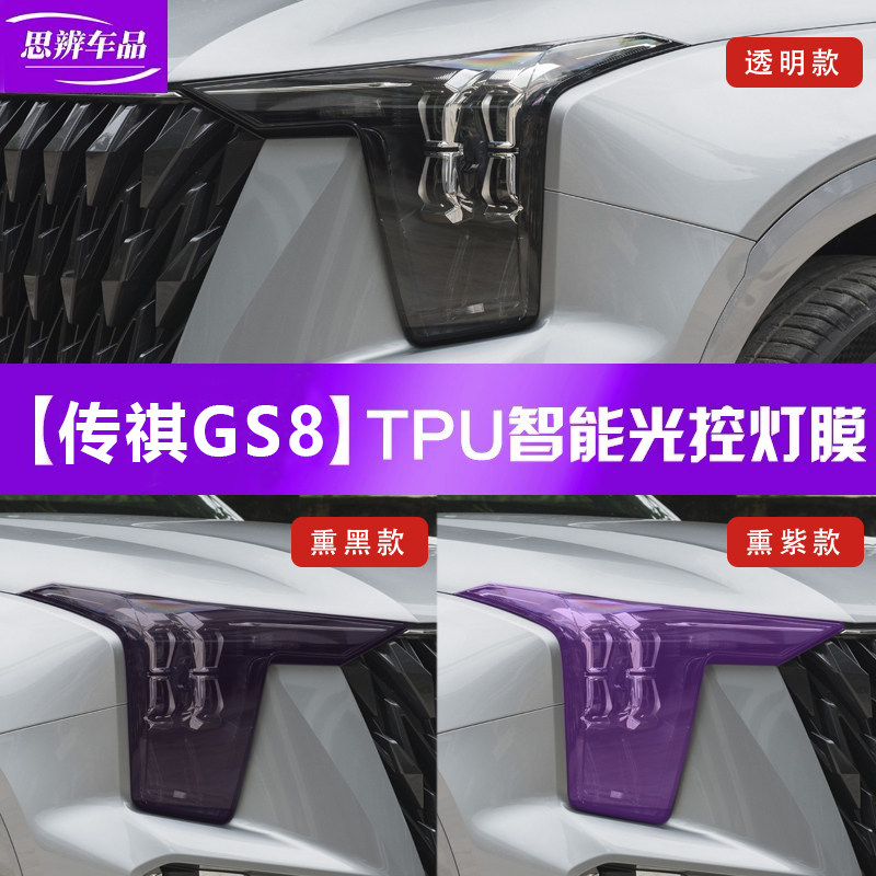 📚 适用广汽传祺GS8光控变色大灯膜熏黑前车灯保护贴膜TPU黑武士改装