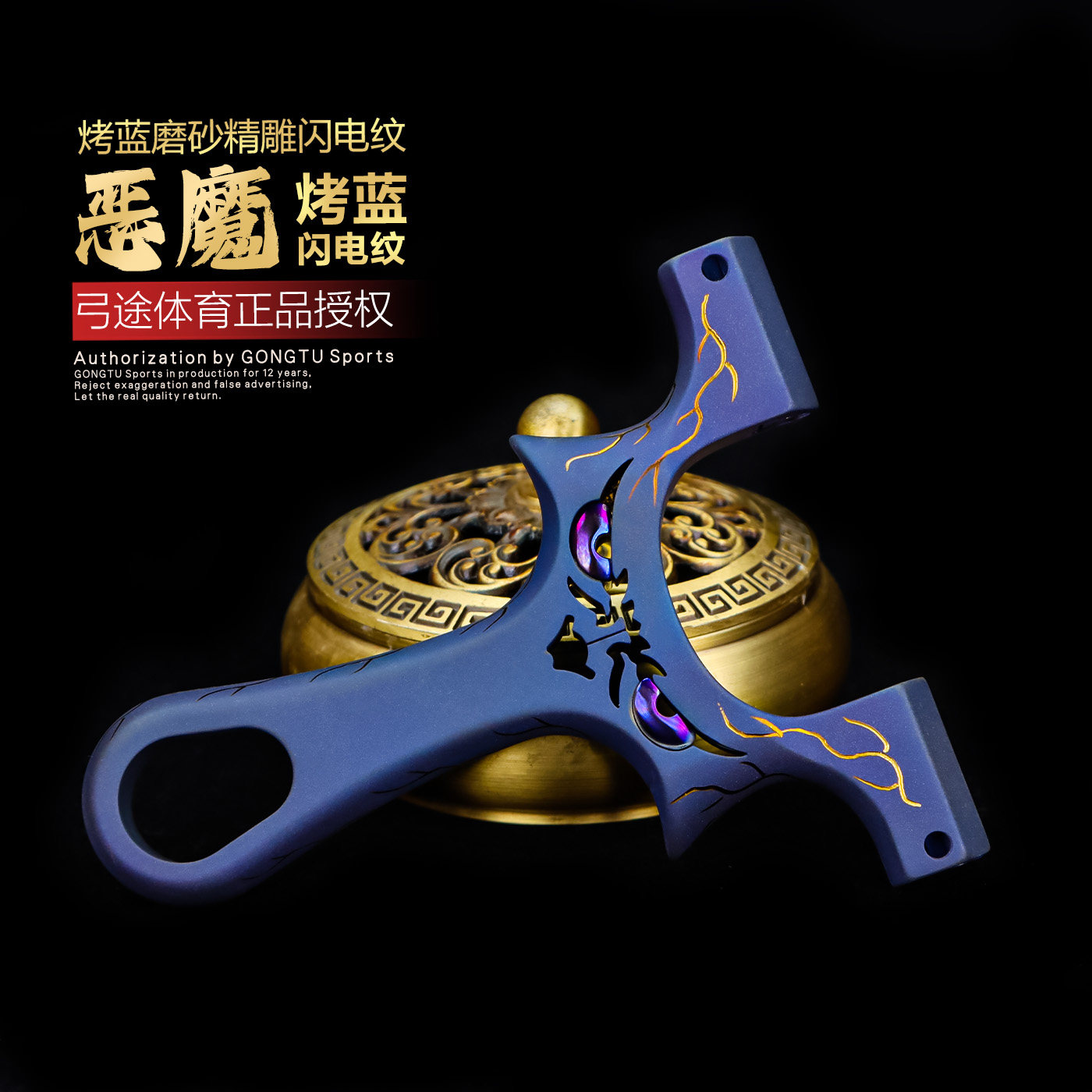 📚 弓途正品钛合金雕刻弹弓重炮恶魔手工精雕比赛大威力雕刻收藏高端