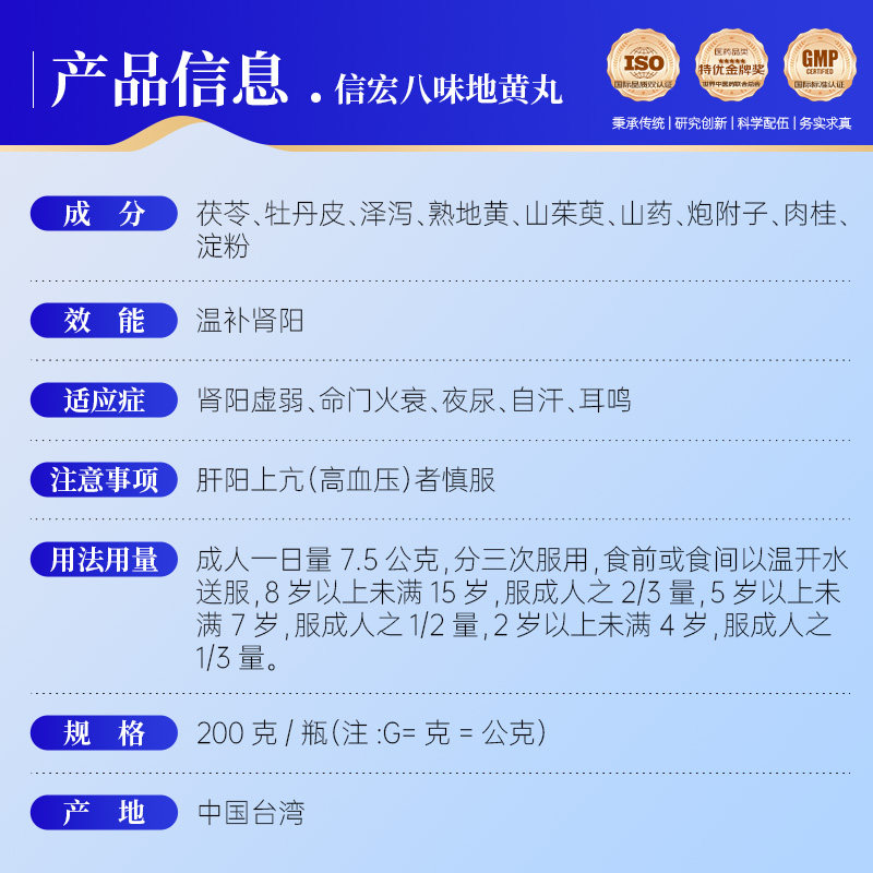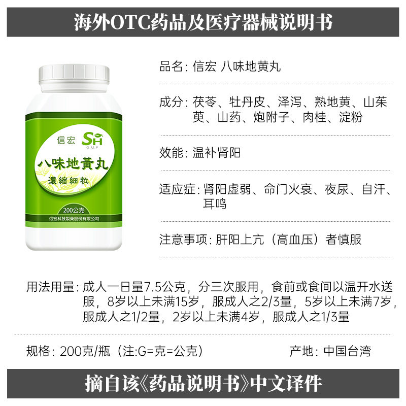 📚 万国制药集团信宏八味地黄丸温补肾阳命门火衰夜尿自汗台湾中药