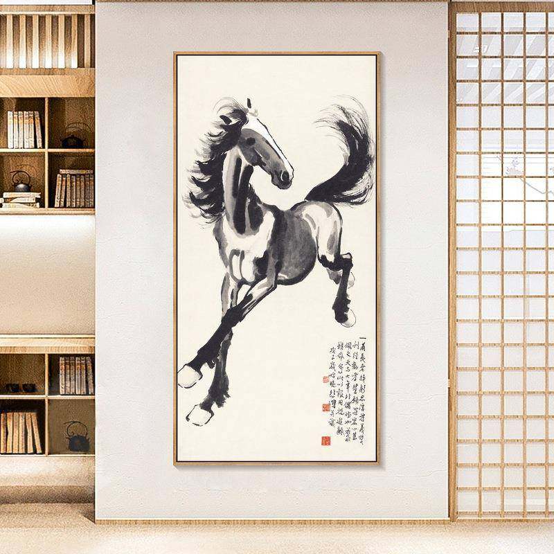📚 马到墨成挂画新中LYASZ182式客厅饰画入户玄关画徐悲鸿水国画功奔