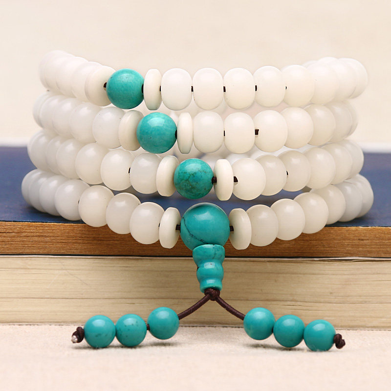 📚 菱镁矿仿绿松石散珠套装星月菩提小金刚配饰圆珠手串文玩三通佛头