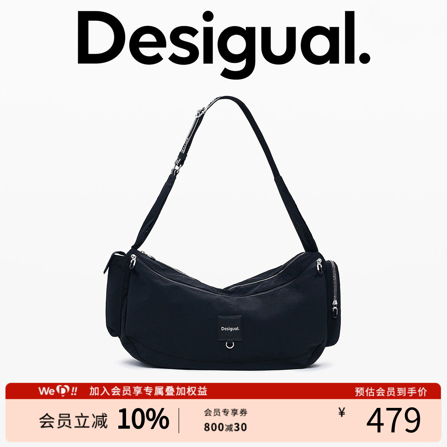 📚 Desigual尼龙大容量单肩斜挎月亮包
