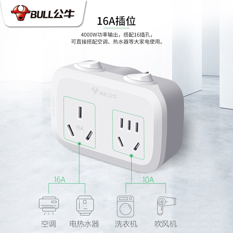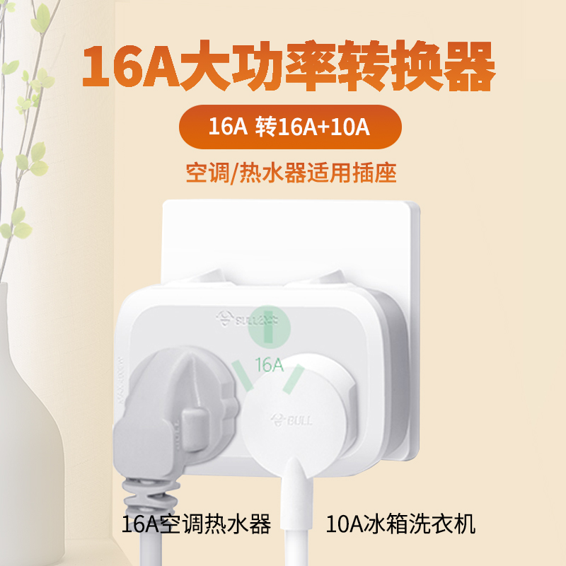 📚 公牛空调插座可用16a转10a加16安扩展大功率插排插线板插头转换器