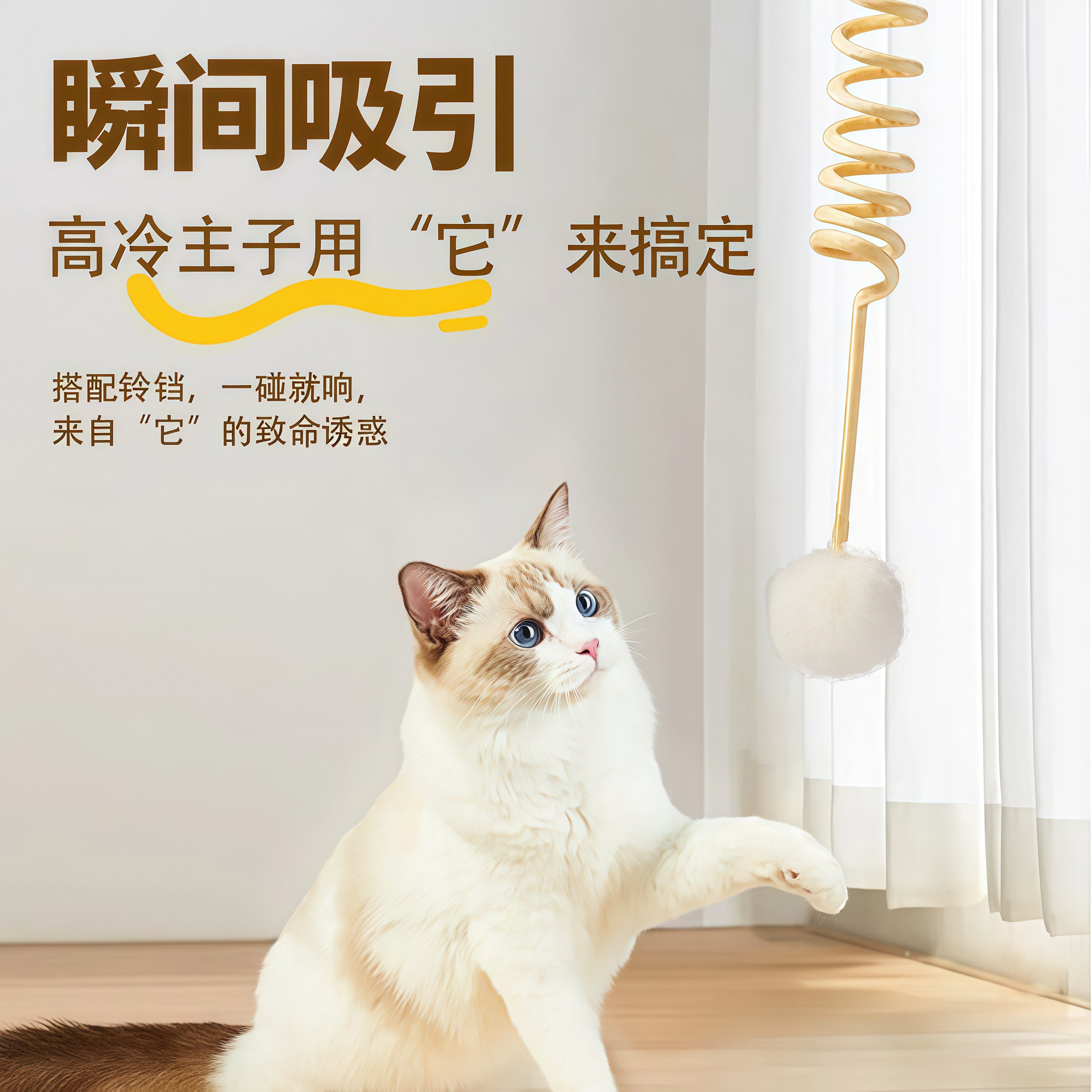📚 猫玩具自嗨解闷荡秋千挂门式兔毛球吸盘弹力绳逗猫棒弹簧猫咪用品