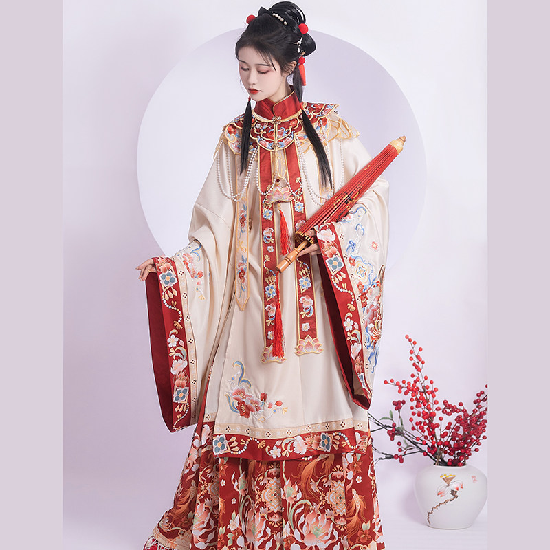 📚 原创汉服女明制斜襟立领长衫马面裙传统汉服云肩秋季重工刺绣春款