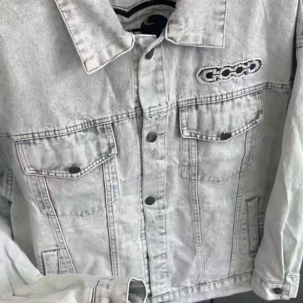 📚 GOOD刺绣牛仔外套秋冬男女轻奢百搭水洗做旧宽松翻领夹克情侣上衣