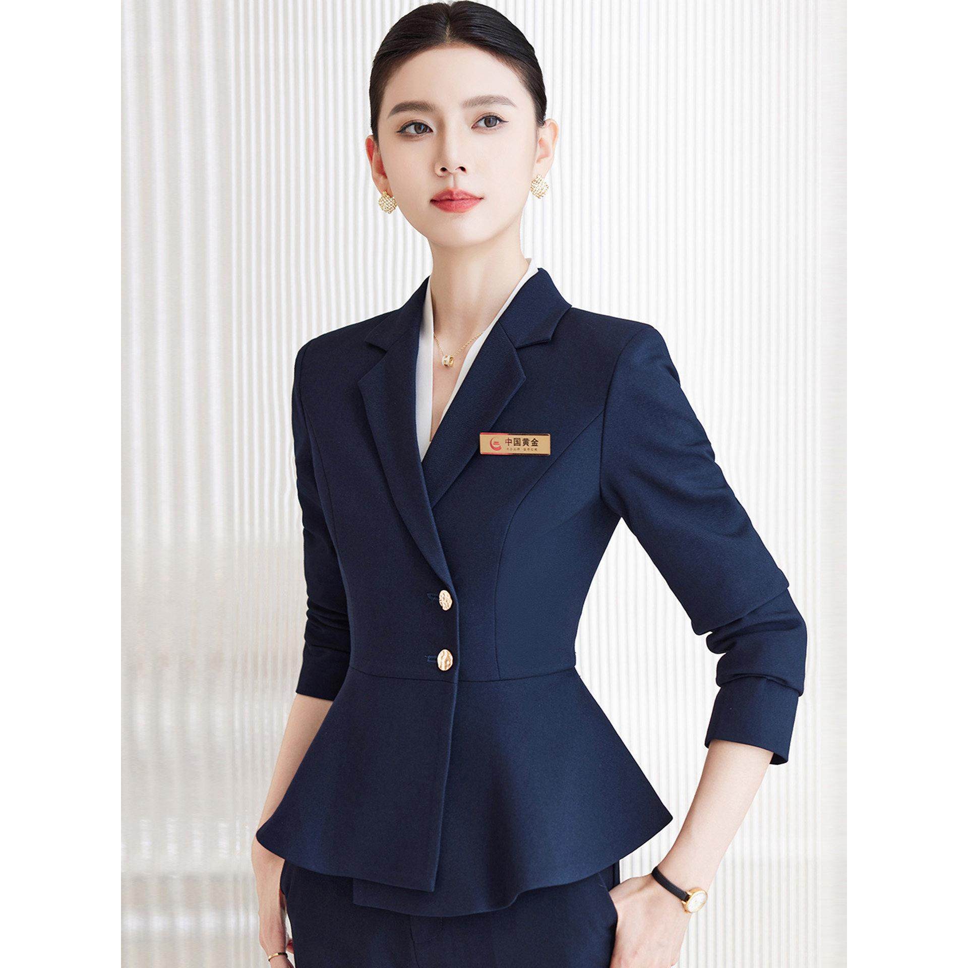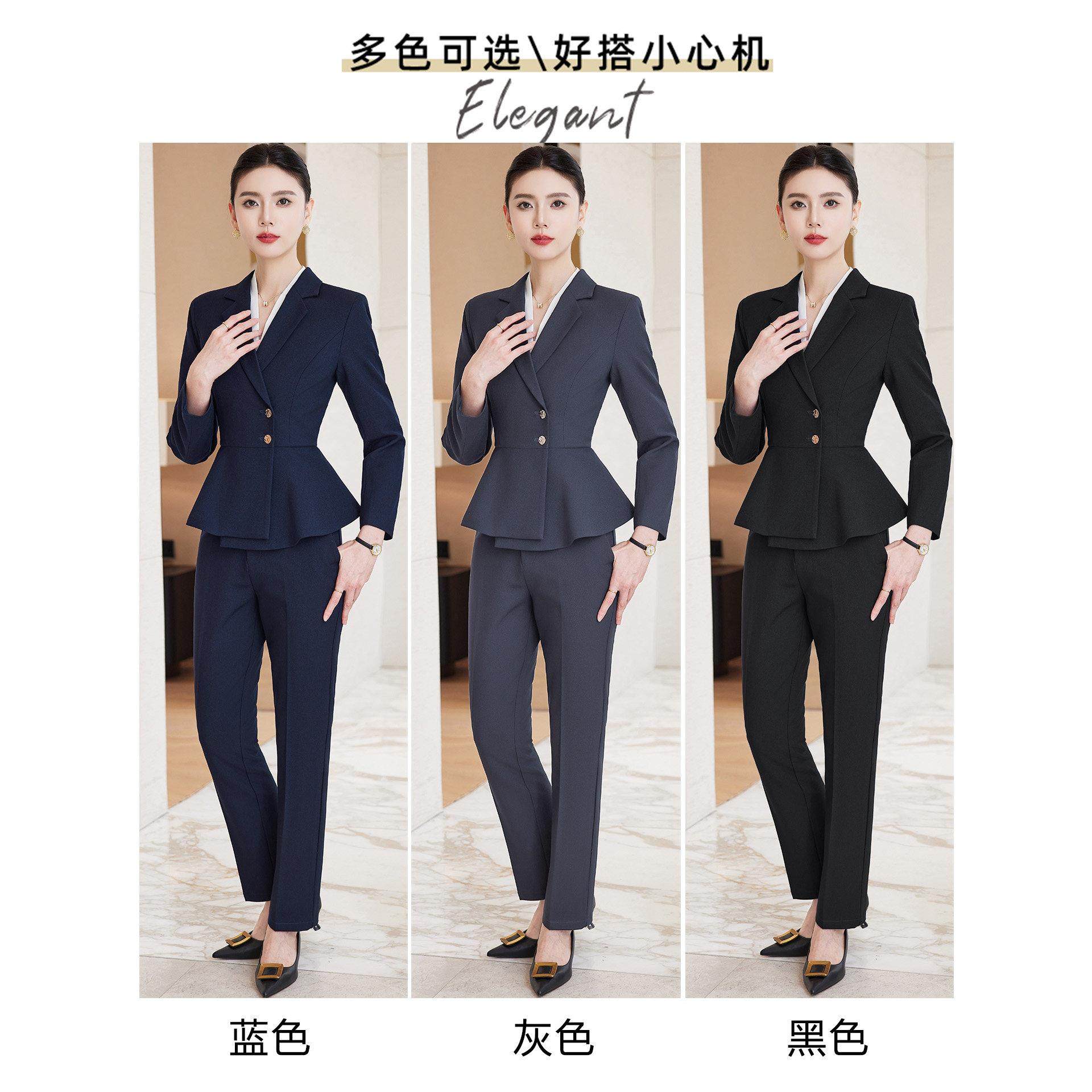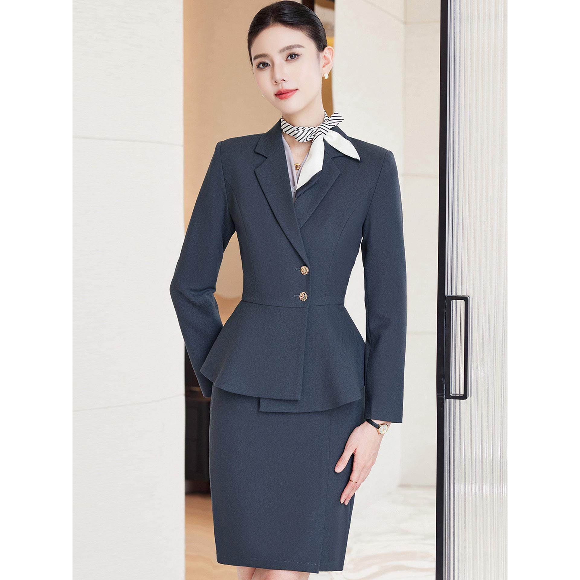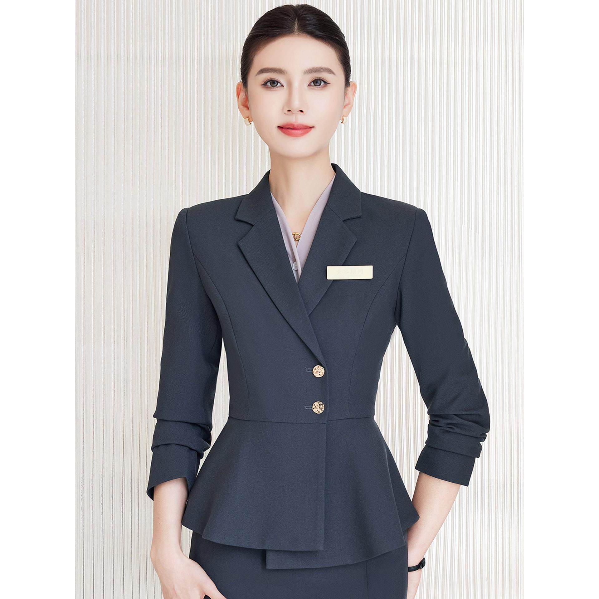 📚 灰色收腰西装女秋冬职业套装珠宝店工作服酒店前台美容院经理高端