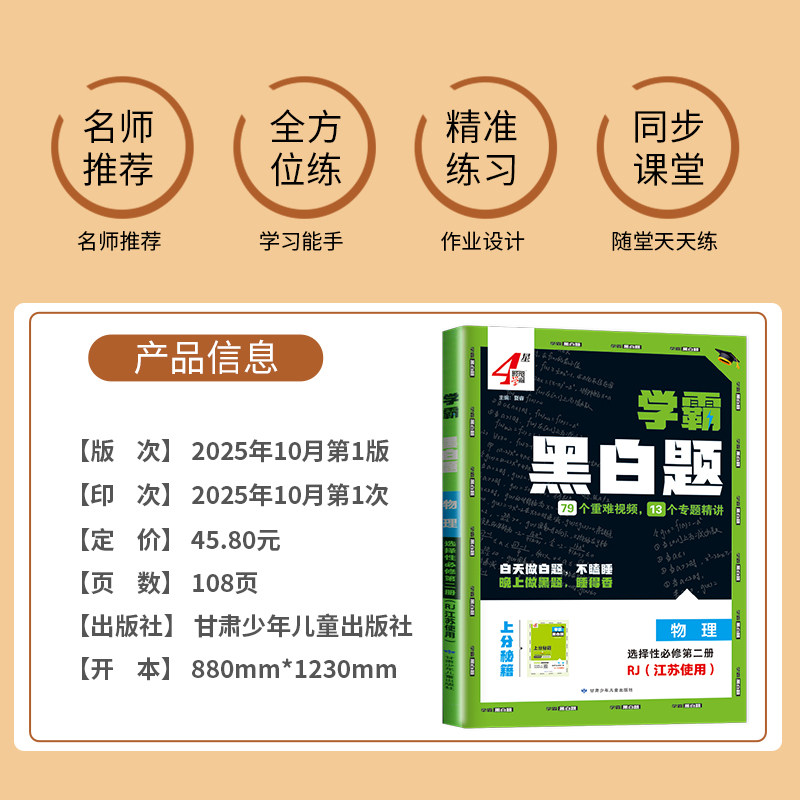 39¥ HU006 P1etUvQesqe¥ https://m.tb.cn/h.ie0SxTR 新教材2026学霸黑白题高中物理选择性必修二第二册人教版江苏专用高二物理选修2课堂作业同步训练辅导书提优必刷题专项基础练习册 --------------------- 【原售价】45.8元 【现售价】32.1元。