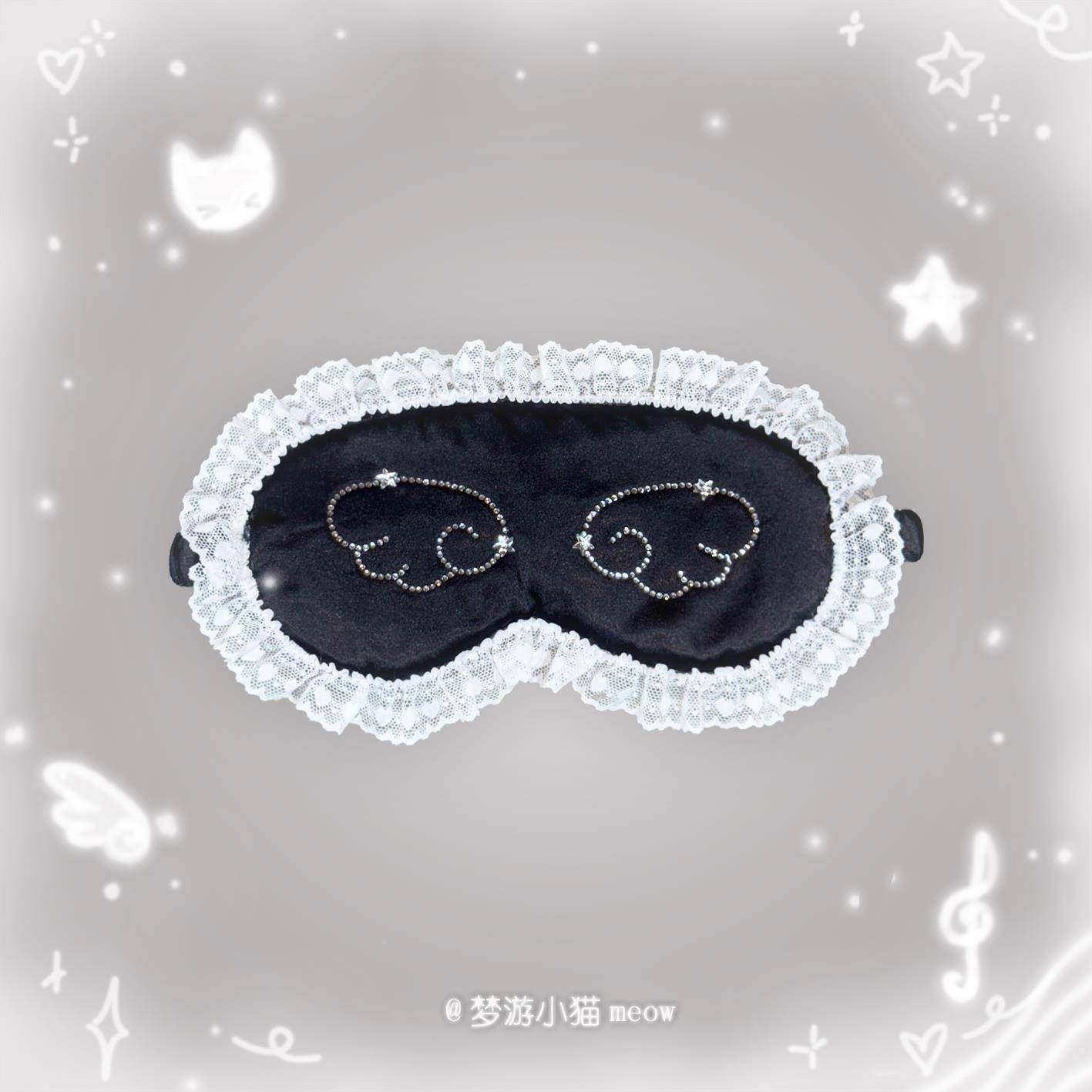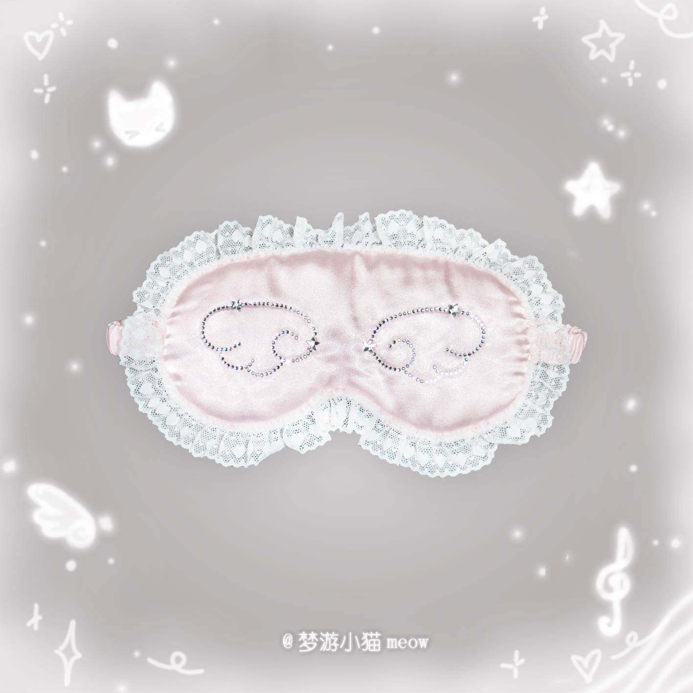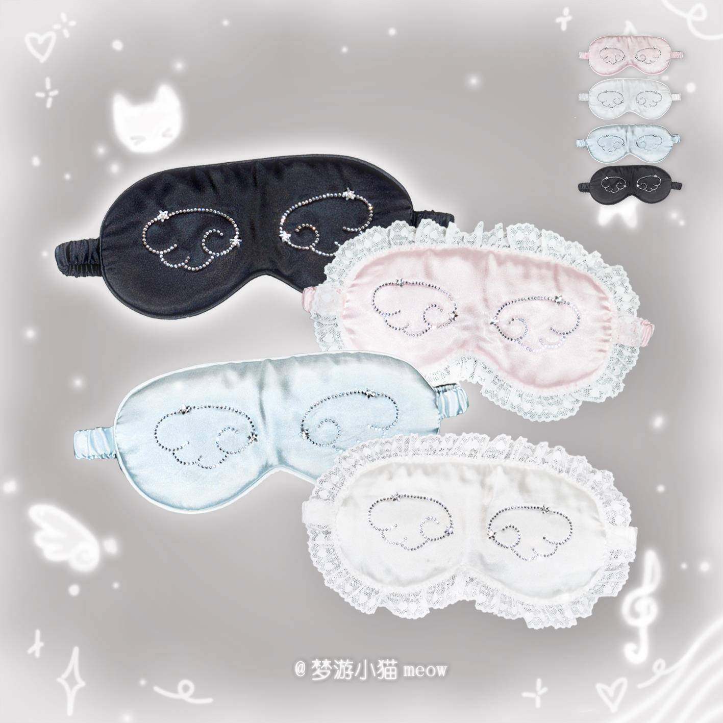 📚 次日达梦游小猫/翅膀闪钻蕾眼罩双面彷真丝安礼睡遮女光甜美少居