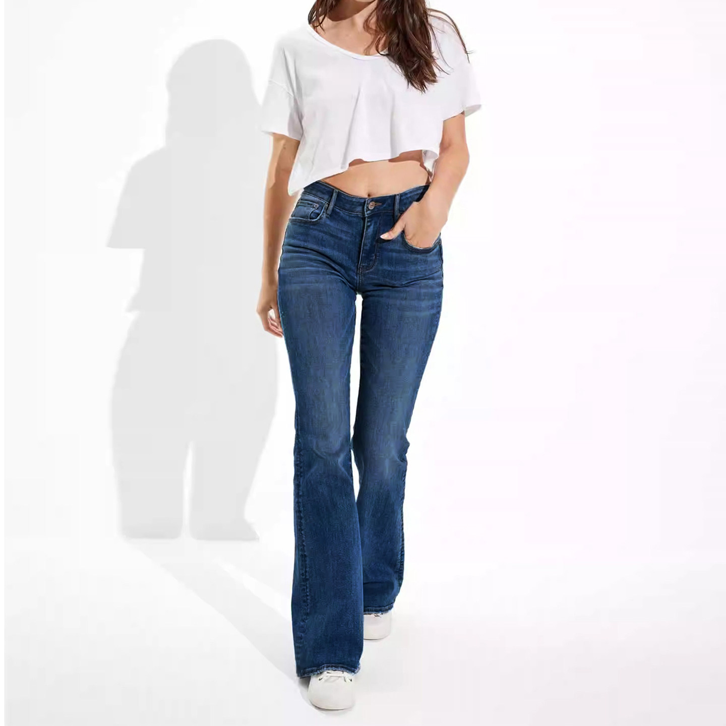 📚 ying高弹力大长腿复古深蓝轻奢款大长腿高腰低腰喇叭牛仔长裤