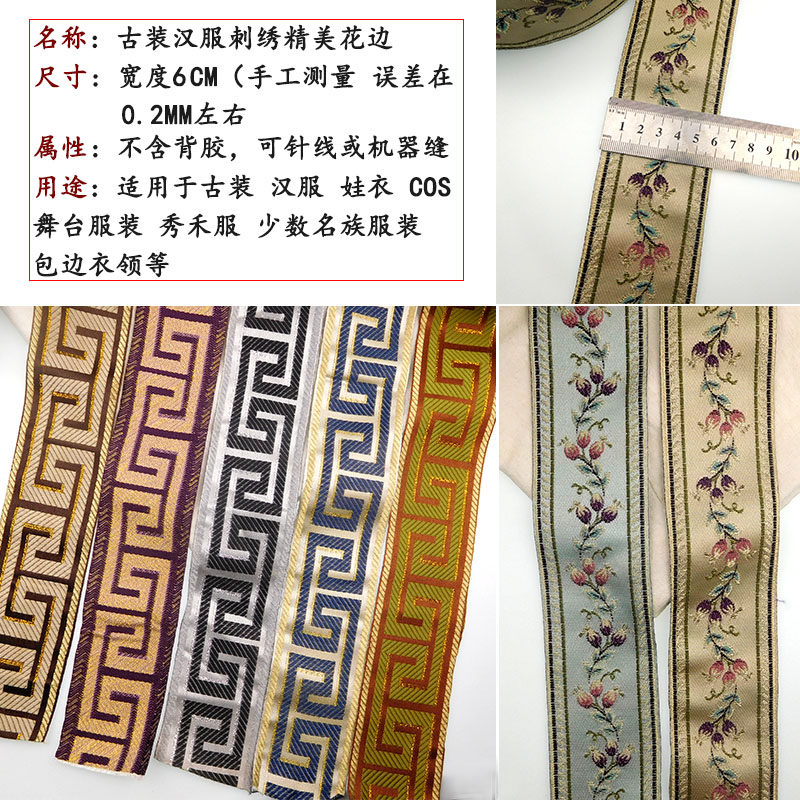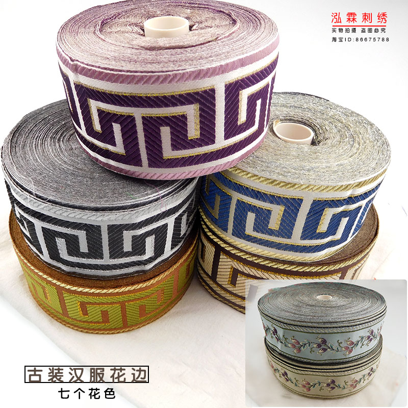 📚 回纹中式花边古装汉服桌布沙发抱枕头唐装装饰花边辅料中国风