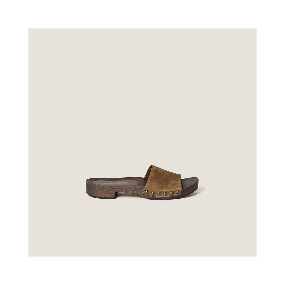 📚 欧洲直邮MIU MIU (2025新品) 水洗麂皮木底鞋凉鞋