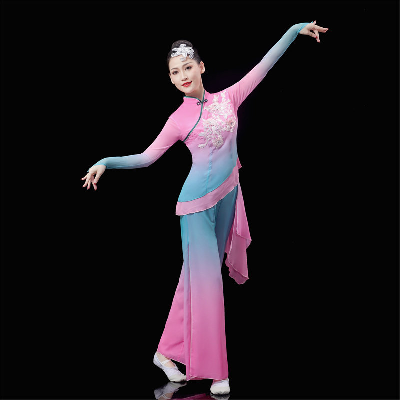 📚 胶州秧歌服演出服女中国风江南古典舞蹈服装飘逸扇子舞表演服套装