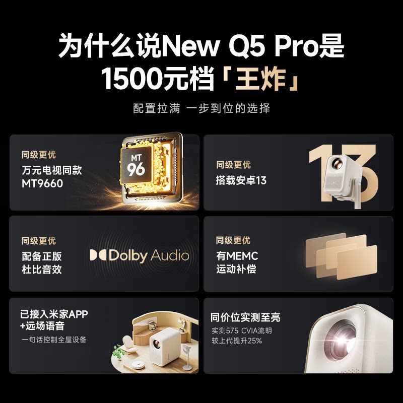 📚 【千元战神】小明New Q5 Pro智能AI投影仪家用超高清投影机家庭影院户外客厅卧室宿舍投屏可连手机旗舰碾压级