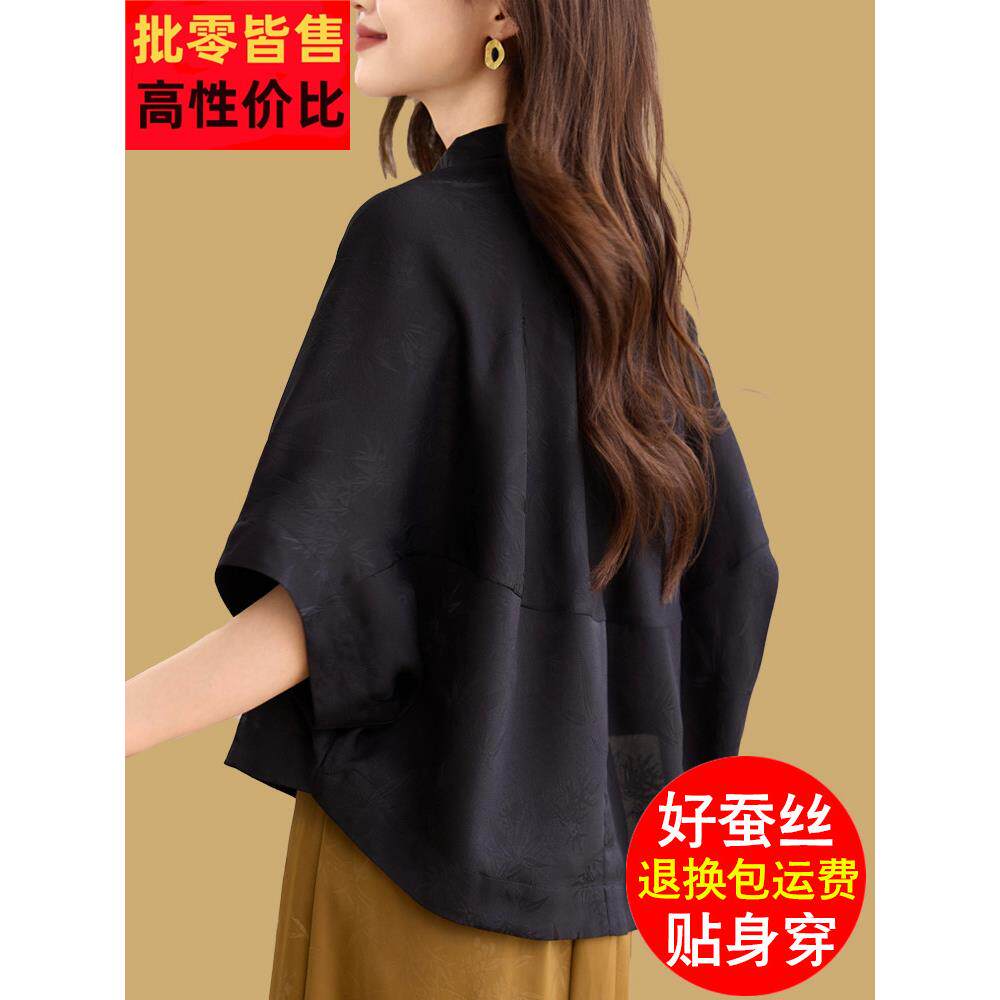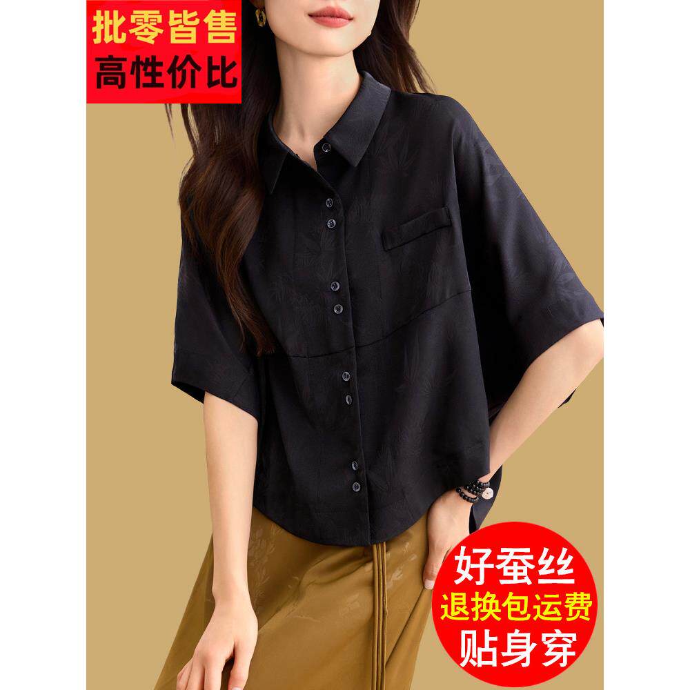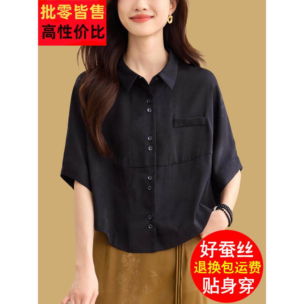 📚 季新款丝绸女式短袖衬衫夏宽松,修身,休闲,西式上衣,,简单的