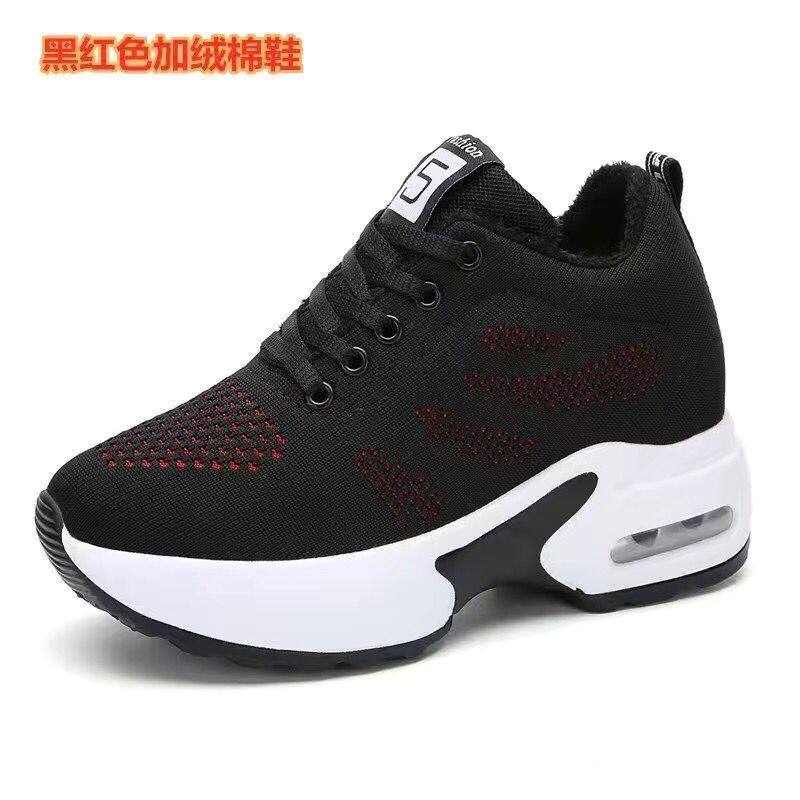 📚 秋冬款隐形内增高女鞋8cm时尚厚底轻便小个子大码运动鞋红色加绒