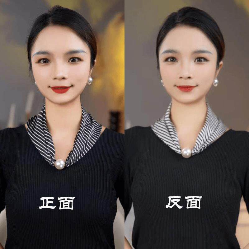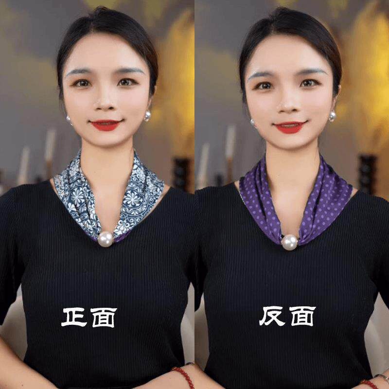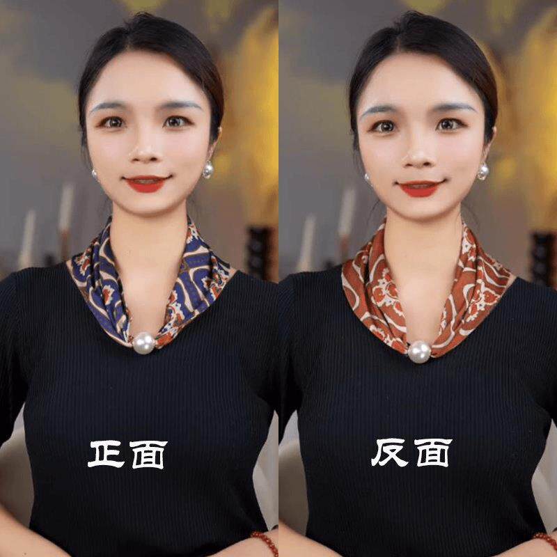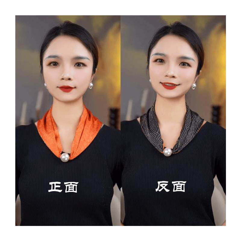 📚 秋冬护颈磁扣丝巾双层双面三角围巾围脖防走光配饰项链大珍珠磁扣