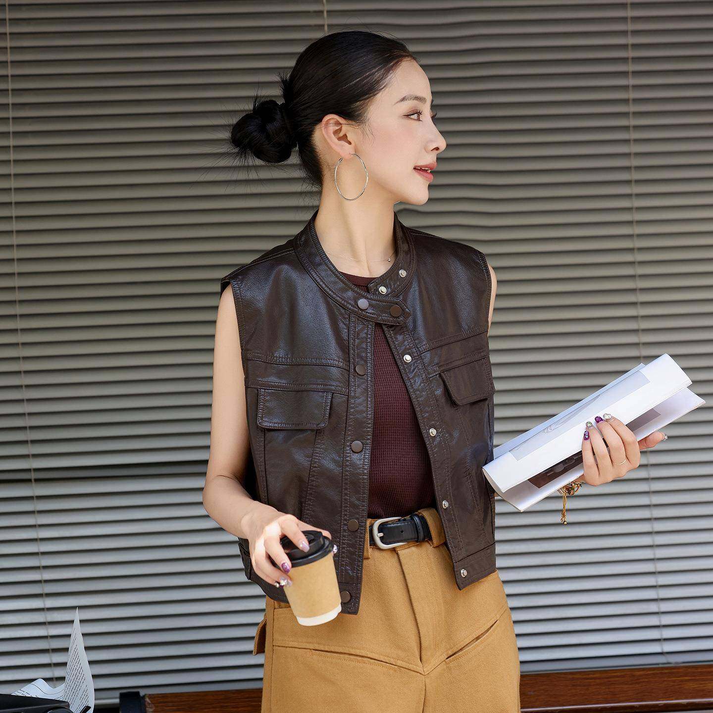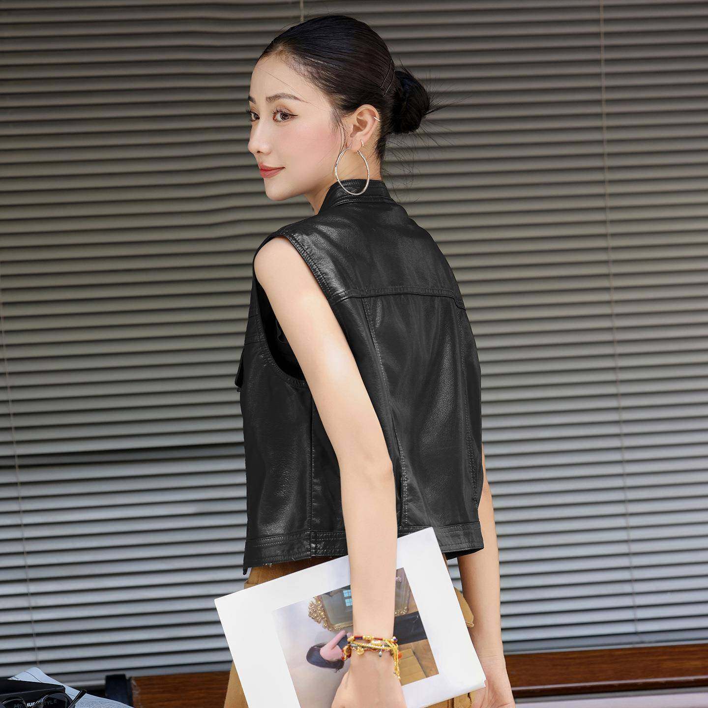 📚 时尚皮衣马外套女新春秋显瘦洋气上款夹WZA衣皮克立领甲