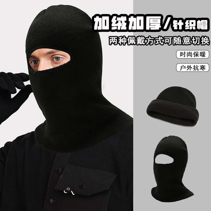 📚 冬季巴拉克拉法帽子男加绒加厚保暖头套摩托骑车防风面罩蒙面冷帽